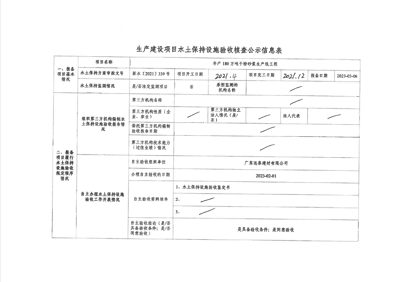 年产180万吨干粉砂浆生产线工程生产建设项目水土保持设施验收核查公示信息表