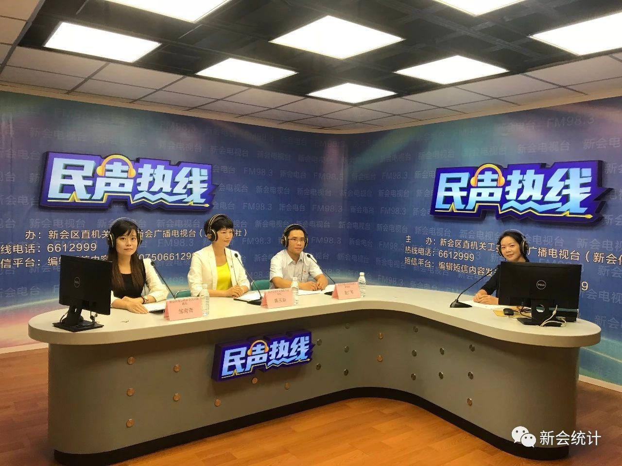 10月10日上午,燕雨直播 统计局上线由新会电台、新会电视台同步现场直播的第242期“民声热线”直播连线节目。区统计局党组书记、局长陈玉如、副局长麦广军及相关股室负责人走进直播间,就“经济普查,利国利民”这一主题与广大市民沟通。