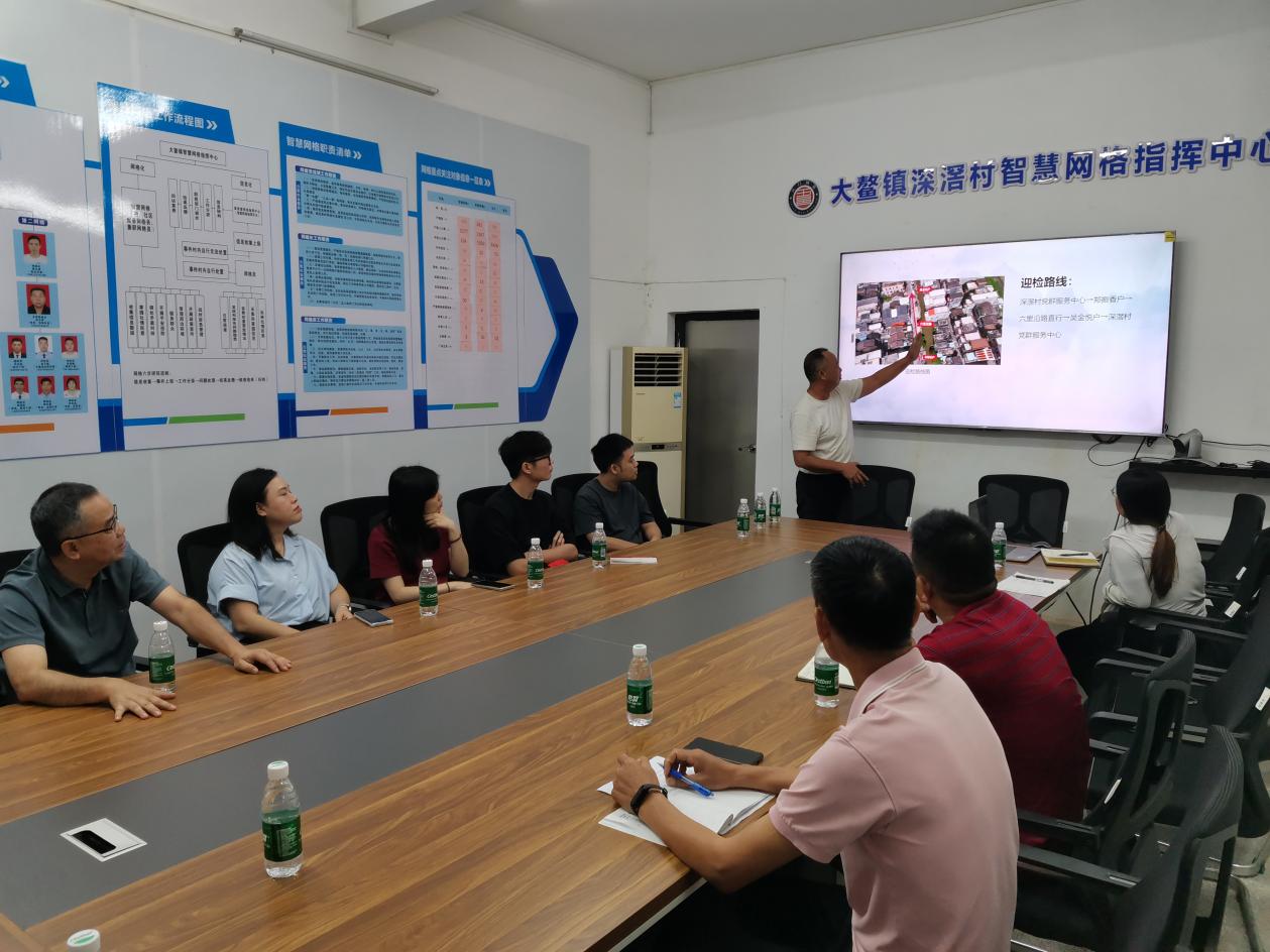 区统计局一行首先来到大鳌镇深滘村委会,与村两委干部和结对乡贤开展座谈。座谈会上,村支书从加油站的规划建设、乡村产业发展和乡村环境整治等方面详细汇报了深滘村近期“百千万工程”的开展情况,结对乡贤对村的发展提出建议。期间,邓玉珠强调深滘村要结合深中通道的开通,抢抓“大桥经济”机遇,谋划乡村经济的快速发展。