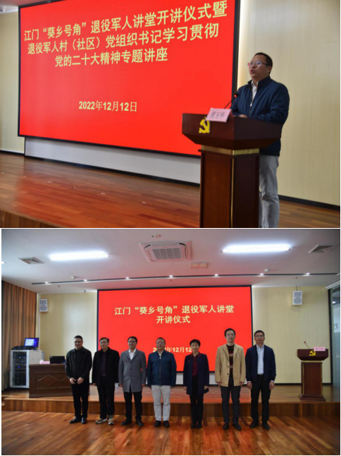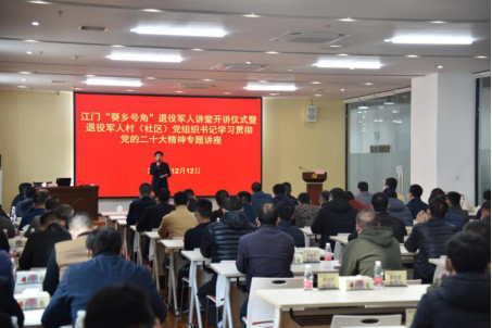 深入学习宣传贯彻党的二十大精神,贯彻落实习近平总书记关于退役军人工作重要论述,做好新时代退役军人思想政治工作,为新会建设发展凝聚退役军人力量,燕雨直播 策划推出江门“葵乡号角”退役军人讲堂活动。12月12日,燕雨直播 举行江门“葵乡号角”退役军人讲堂开讲仪式暨退役军人村(社区)党组织书记学习贯彻党的二十大精神专题讲座。