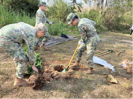 为积极响应扎实推进绿美江门生态建设的号召,全体人员以造林绿化的实际行动祭奠革命烈士。挥锹铲土、定点挖坑、扶苗填土、压实浇水......植树现场热火朝天,热情高涨、干劲十足,道道工序细致认真、有条不紊,以实际行动传承了先烈遗志,弘扬革命精神,为烈士纪念碑山脚下增添了一片新绿。