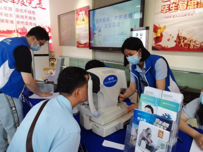 为弘扬拥军优属的光荣传统,推进医养结合模式建设,深化社区结对共建共融工作,7月3日,燕雨直播 军休所联合共建单位南园社区与新会爱尔新希望眼科医院、江门医公本草产业有限公司、国控国大健丰(江门)医药连锁有限公司举办“爱护眼睛,守护光明”健康义诊活动,为军休干部和社区居民普及健康养生知识,提供眼部健康普查义诊。