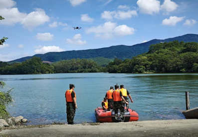 在模拟险情警报响起后,应急救援保障队携带动力橡皮艇、救生衣和救生圈等水上救援装备迅速赶往现场。到达后,队内的无人机操控员使用无人机搜寻救援目标,对水库周围环境进行建模,为救援提供一条安全可靠的路线。