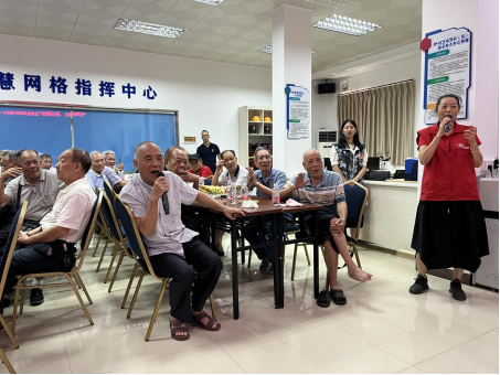 以军歌嘹亮,献唱红歌。热心义工英姨以激昂献唱《我爱我的祖国》、《军中绿花》等曲目,一同欢庆第96个建军节的到来。一首首红歌燃起,大家都内心澎湃,记忆再次被拉回到当年参军的情景,难忘的军旅岁月再次浮现脑海。