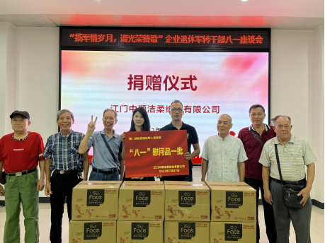 为了延续军民送爱心,带领热心企业走进退役军人,座谈会现场,江门中顺洁柔纸业有限公司作为热心企业的代表之一,还为企业退休军转干部捐赠了“八一”爱心礼包,传递军民温情,营造尊重军人的浓厚氛围。