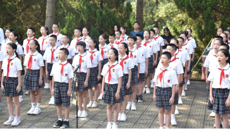 紧接着,少先队员齐唱《我们是共产主义接班人》,表达新时代少年儿童发扬革命传统、奋发图强的精神风貌。