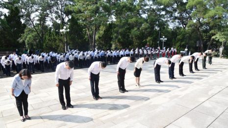 随后,在庄严肃穆的烈士纪念碑前,全体人员向革命烈士三鞠躬,寄托深切哀思,表达崇高敬意。