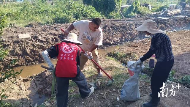 会城街道梅江村退役军人陈锦龙参与防控清杂工作。