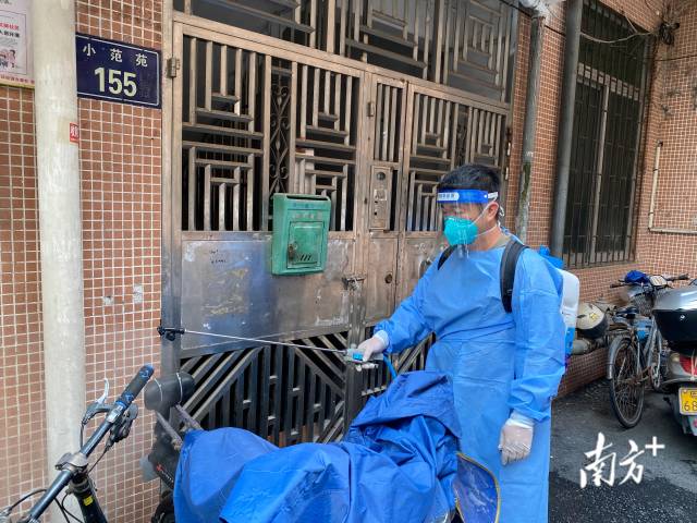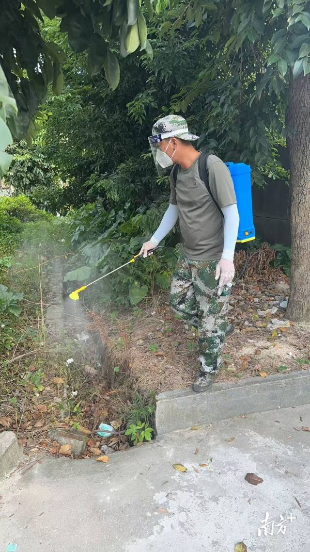 新会转业士官叶德建支援鹤山消杀工作。