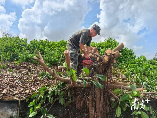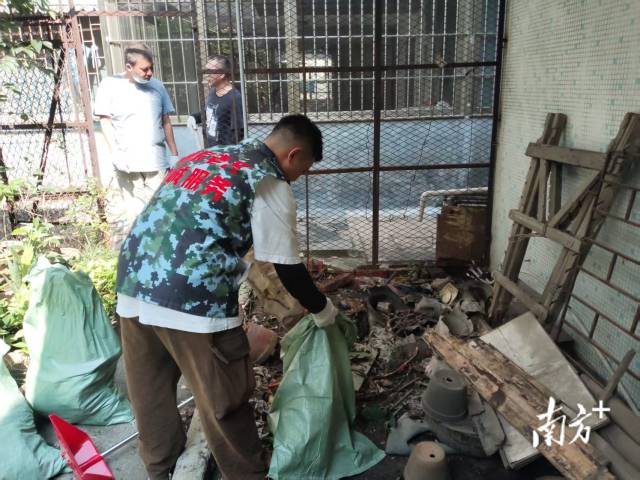 古井镇南朗村退役军人梁兆文支援会城街道清杂工作。