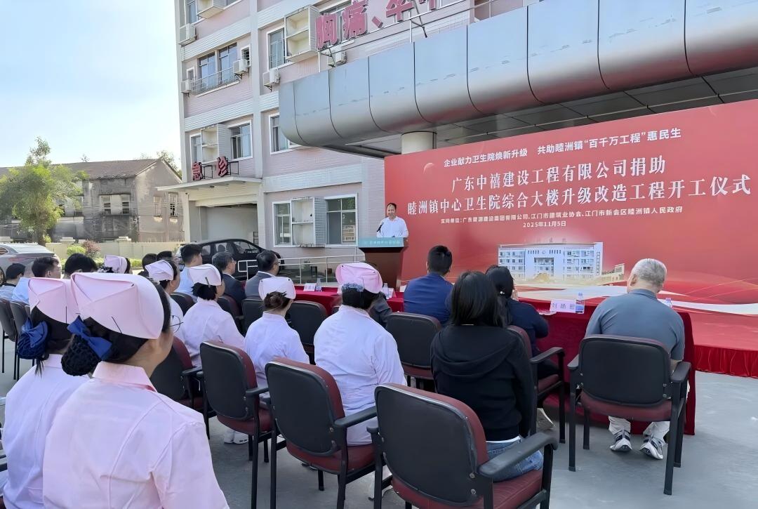 11月5日,由广东中禧建设工程有限公司爱心捐助的睦洲镇中心卫生院综合大楼升级改造工程、东成村老人之家升级改造项目正式动工。这两个项目将为睦洲镇“百千万工程”典型镇、村建设注入强劲的民生动能,切实提升当地医疗和养老服务水平。燕雨直播 党组成员、副区长、睦洲镇党委书记韩强,区卫生健康局、睦洲镇政府相关负责人,以及捐助企业广东中禧建设工程有限公司、支持单位广东聚源建设集团有限公司和江门市建筑业协会的代表共同出席了开工仪式。