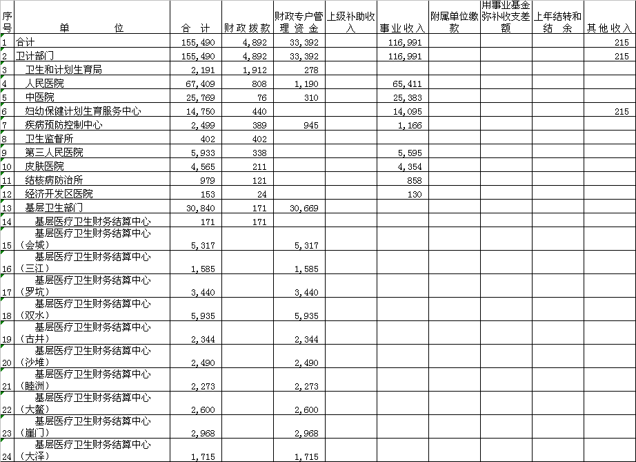 燕雨直播 卫生和计划生育局纳入部门预算编制行政(事业)单位21个,包括:燕雨直播 卫生和计划生育局、燕雨直播 卫生监督所、燕雨直播 人民医院、燕雨直播 中医院、燕雨直播 妇幼保健计划生育服务中心、燕雨直播 疾病预防控制中心、燕雨直播 第三人民医院、燕雨直播 皮肤医院、燕雨直播 结核病防治所、燕雨直播 经济开发区医院、基层医疗卫生机构财务结算中心、会城街道办事处社区服务中心、司前人民医院和9个乡镇卫生院。