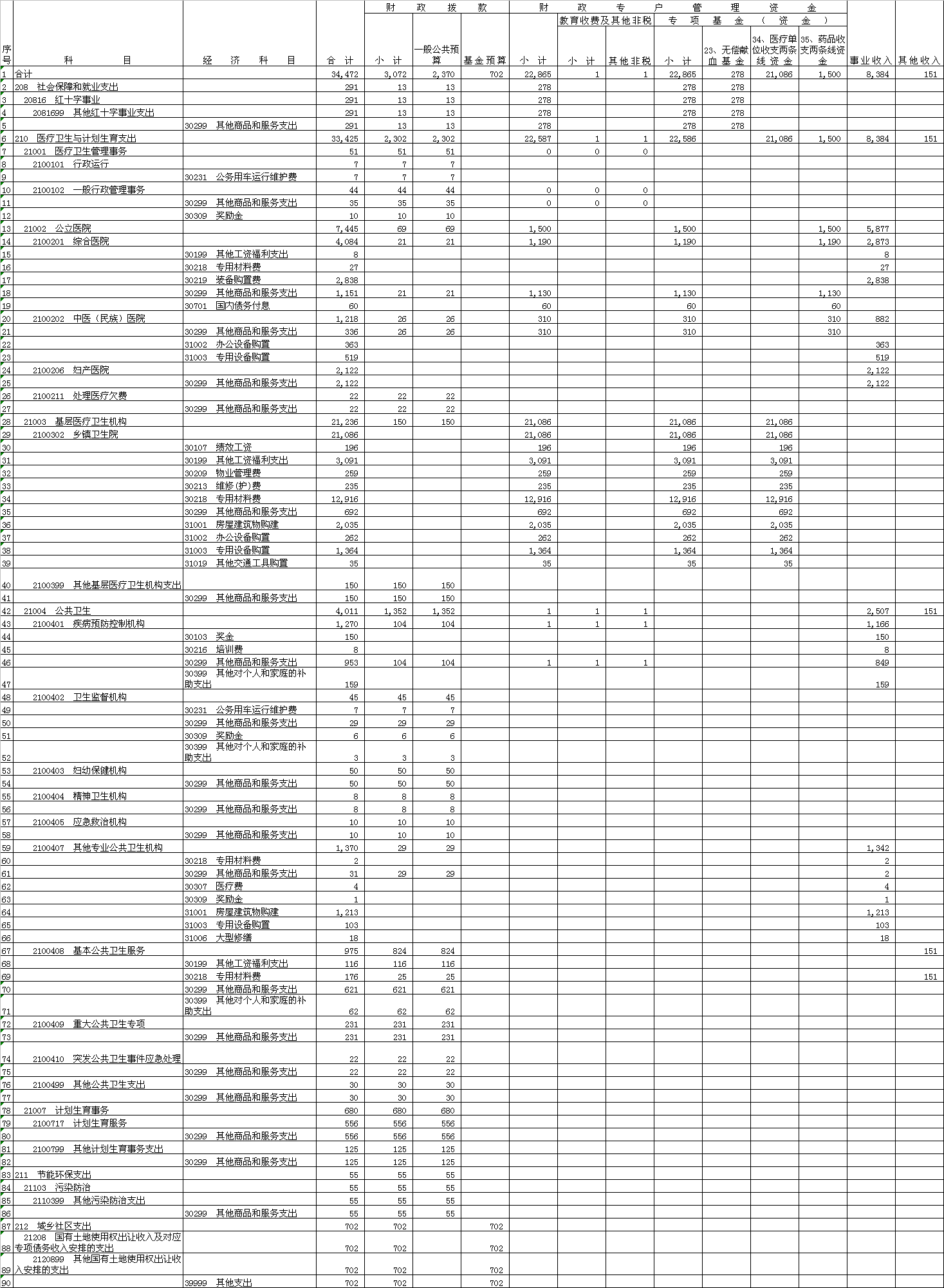 项目支出预算3071.71 万元,主要支出项目有医疗卫生与计划生育事务支出、公立医院支出、基层医疗卫生机构支出、公共卫生支出、中医药专项支出、节能环保支出、城乡社区事务支出等。