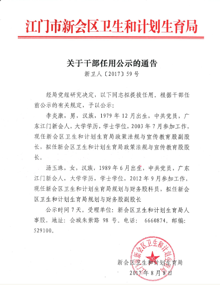 关于干部任用公示的通告