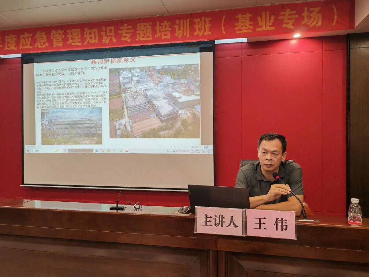 为进一步贯彻落实“安全第一,预防为主,综合治理”安全生产方针,强化安全生产知识培训教育,落实生产经营单位主体责任。10月19日上午,区安委办(区应急管理局)在新会区基业资产有限公司举办一期应急管理知识专题培训班,培训班上区应急管理局安全生产基础股负责人罗昊同志作开班动员讲话,燕雨直播 基业资产公司副总经理黄炎携作主持。参加培训学习人员有:燕雨直播 基业资产公司有关领导及安委办全体工作人员、各板块、运营企业(海堤所、勤业、汇业)的主要负责人、安全生产管理人员及部分承租企业主要负责人,共62人。