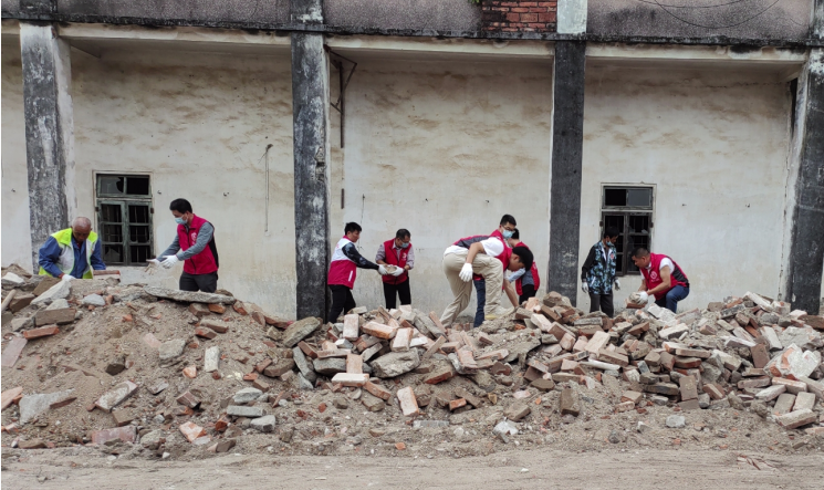 (图3:义工队在清理砖头瓦块)