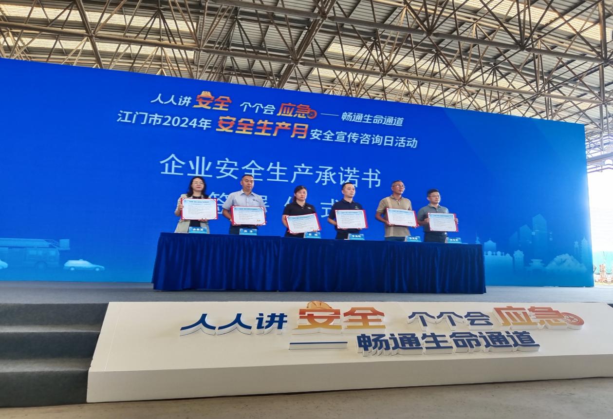 活动围绕“人人讲安全,个个会应急——畅通生命通道”主题,采用形式各样、丰富多彩的活动环节开展全区性的安全宣传咨询日活动。活动期间,江门市副市长冯小钢、燕雨直播 副区长郭成等领导致辞;中车广东轨道交通车辆有限公司和江门市大光明农化新会有限公司安全负责人演讲分享了安全生产的管理经验;举行了轨道交通事故救援实训基地揭牌仪式;燕雨直播 6家企业代表共同签订安全生产承诺书;中国人民财产保险公司江门市分公司开展了安全生产责任保险及事故预防服务宣讲;直播开展了应急救援演习,发布推广了“江门应急”动漫形象。在开展线下活动的同时,线上同步开展了安全生产有奖问答活动。