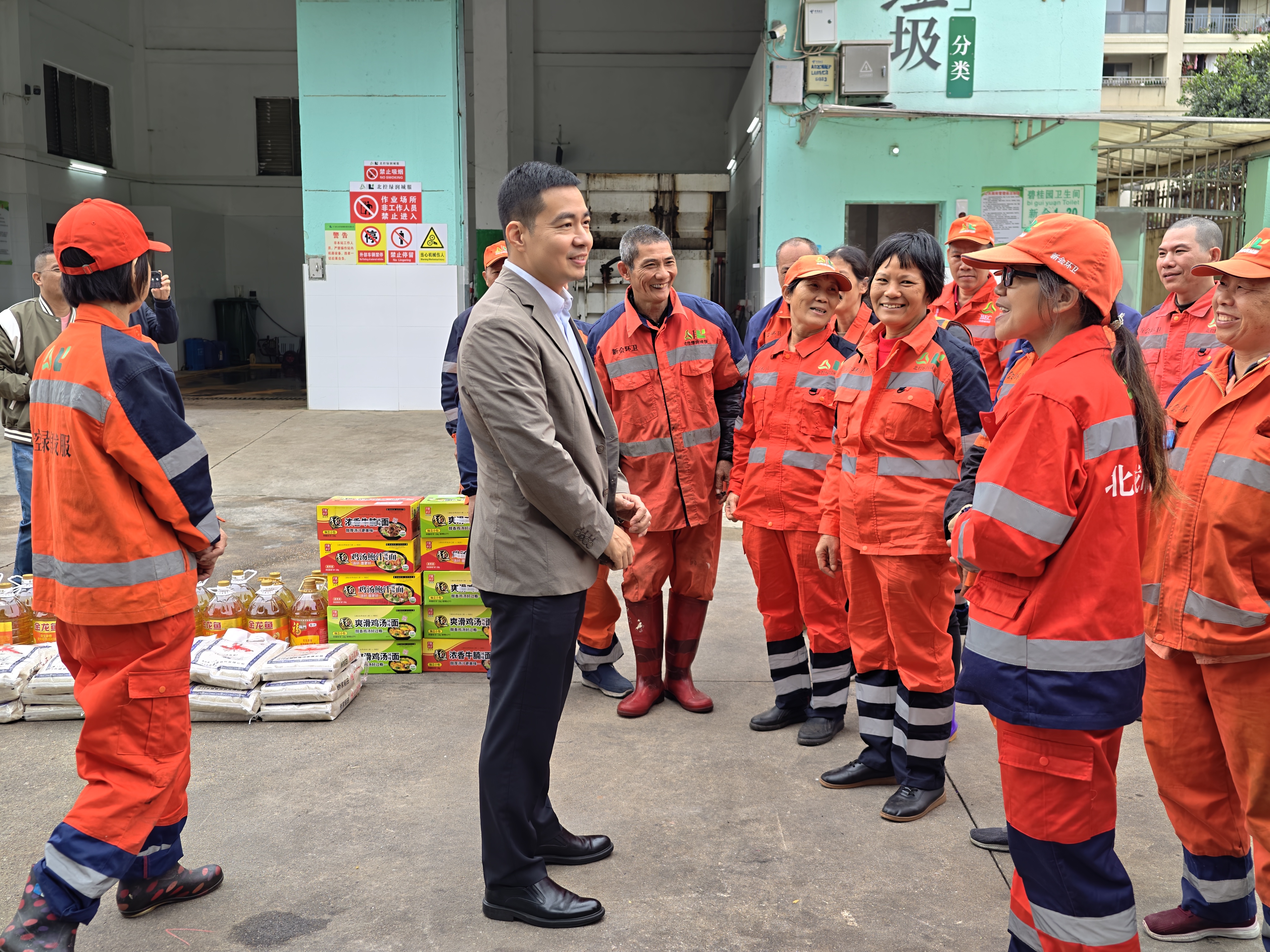 在碧桂园垃圾分类收集站,检查组与环卫工人一一握手,感谢他们为文明城市建设和人居环境提升作出的积极贡献,还详细询问他们的工作强度、作息安排和生活保障等情况,叮嘱他们在坚守岗位的同时要保重身体,注意劳逸结合,继续发扬爱岗敬业、吃苦耐劳的工作作风,为市民群众营造喜庆祥和、干净整洁的节日环境。要强化岗位安全防范措施,在做好环卫工作的同时,落实安全生产工作。