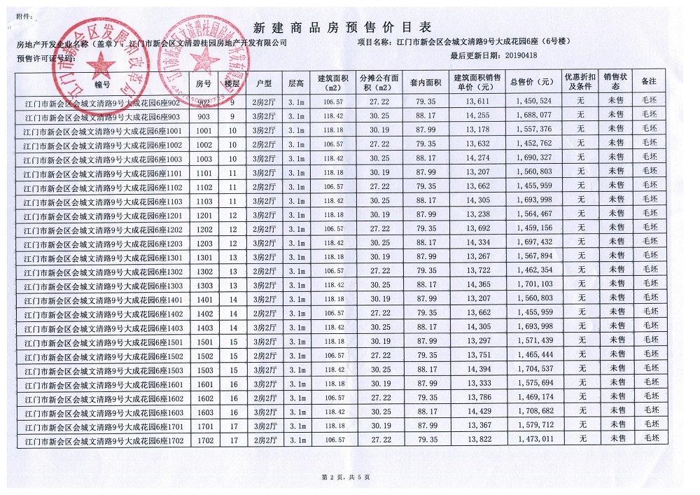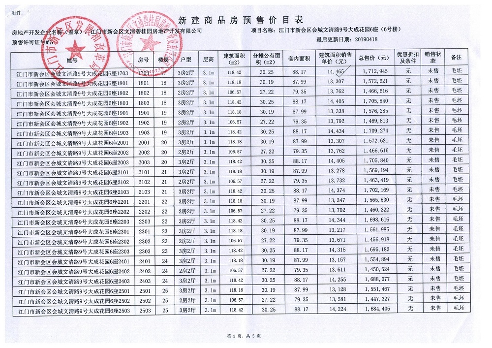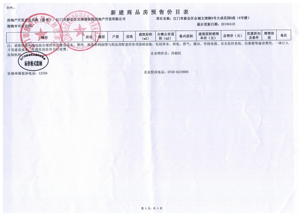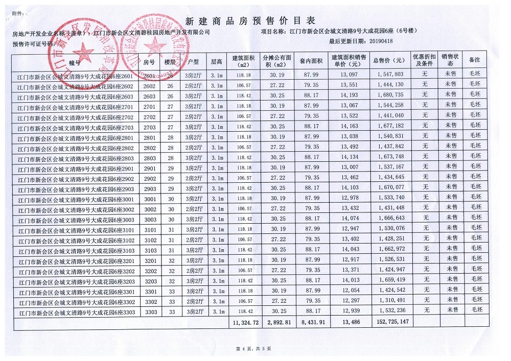 商品房预售许可(新会碧桂园九期6号楼,新会预许字第2019004号)