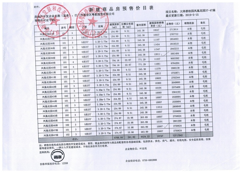 商品房预售许可(大泽碧桂园三区37-47号楼,新会预许字第2019028号)