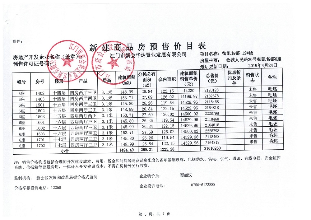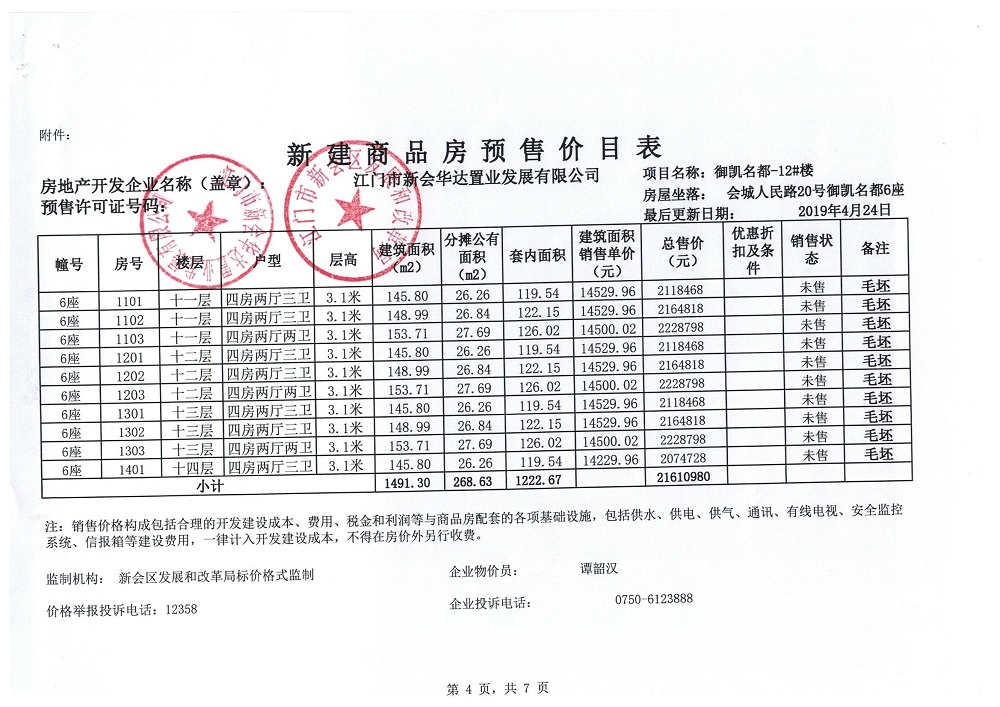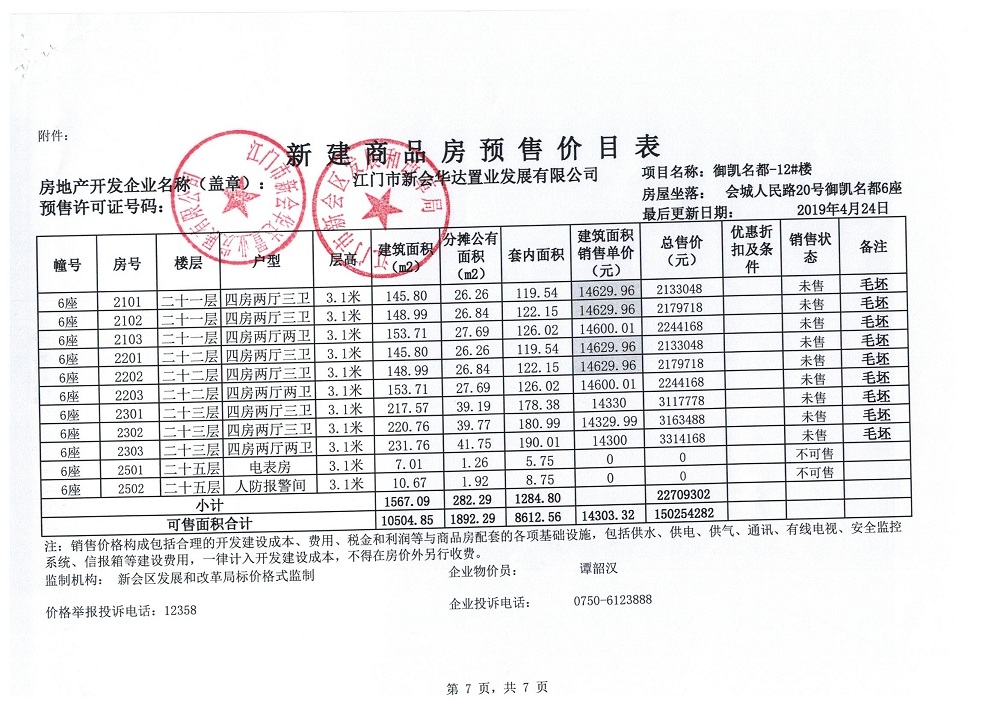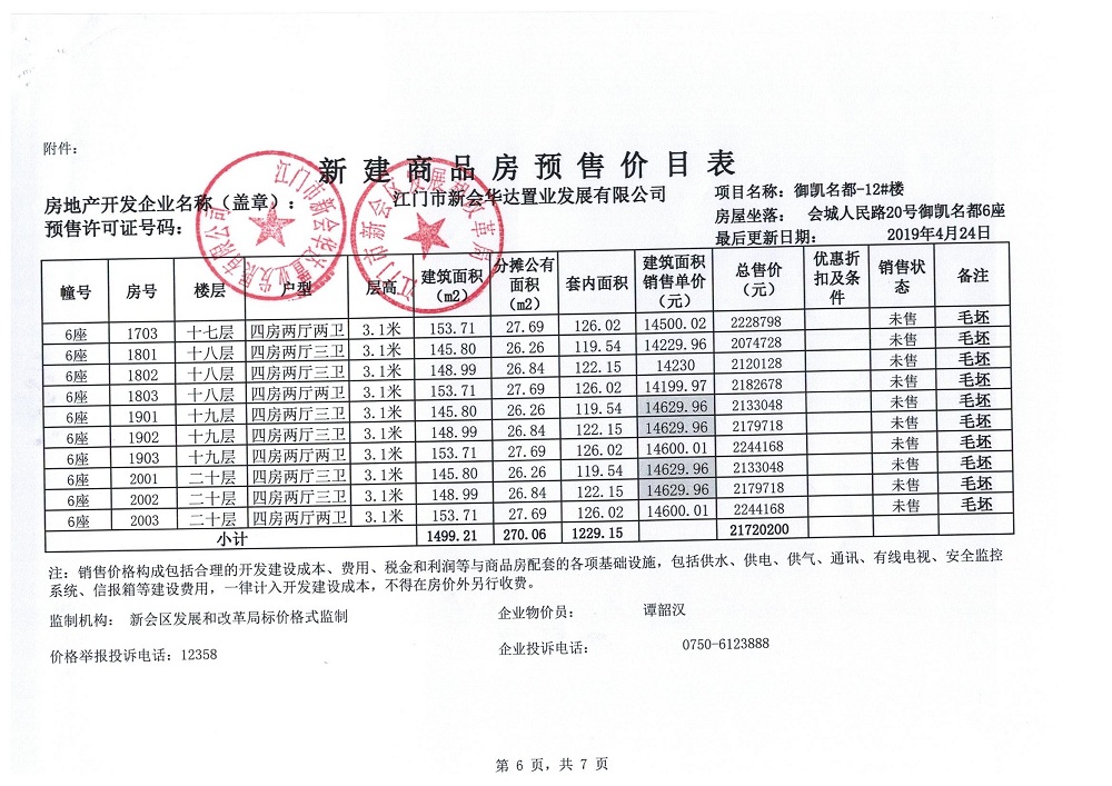 商品房预售许可(御凯名都12#楼,新会预许字第2019026号)