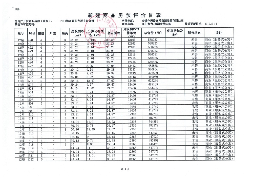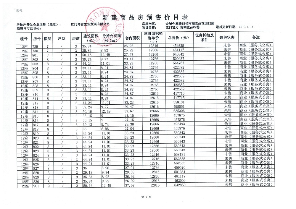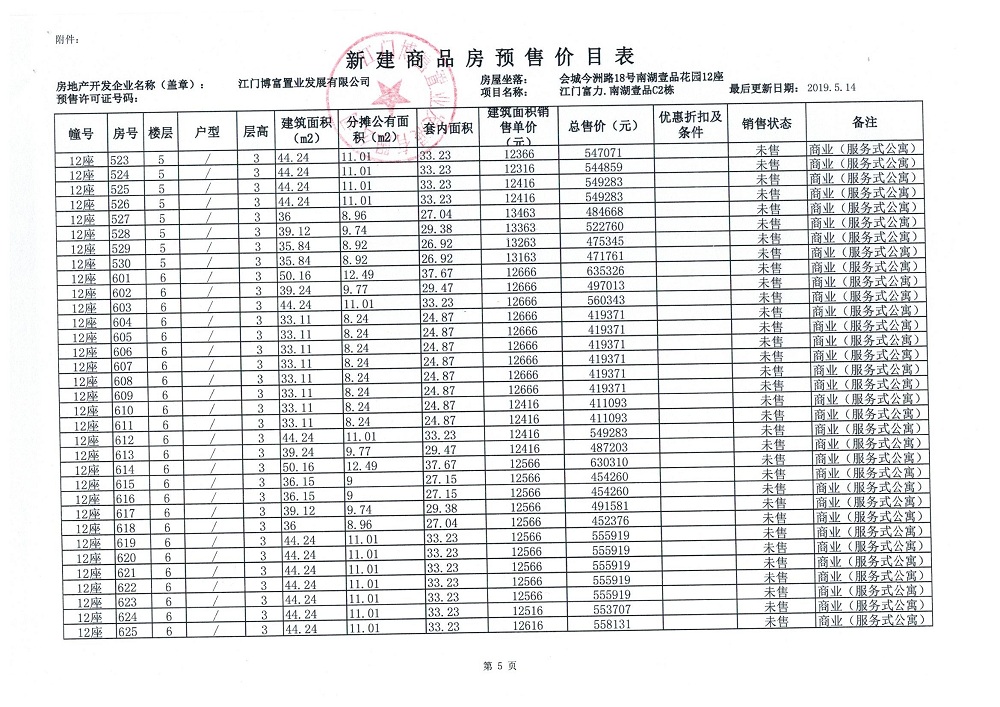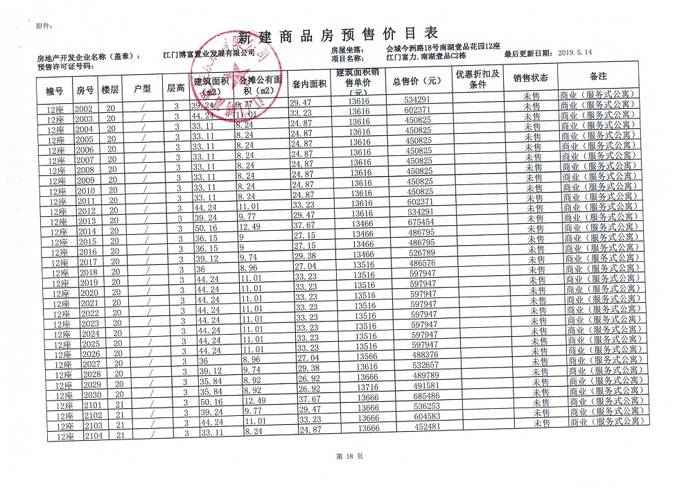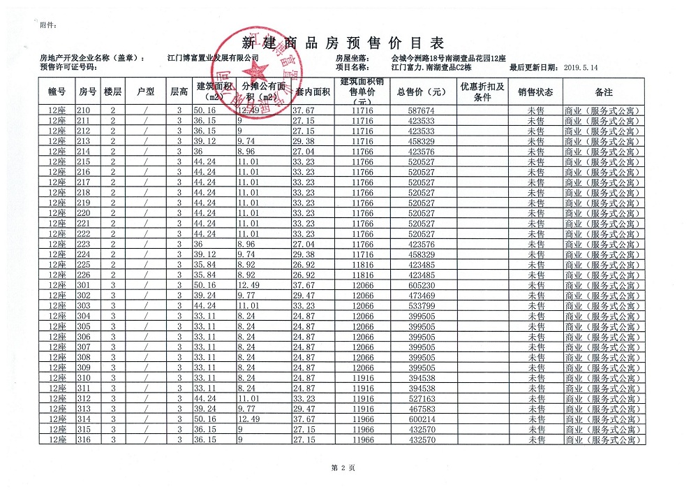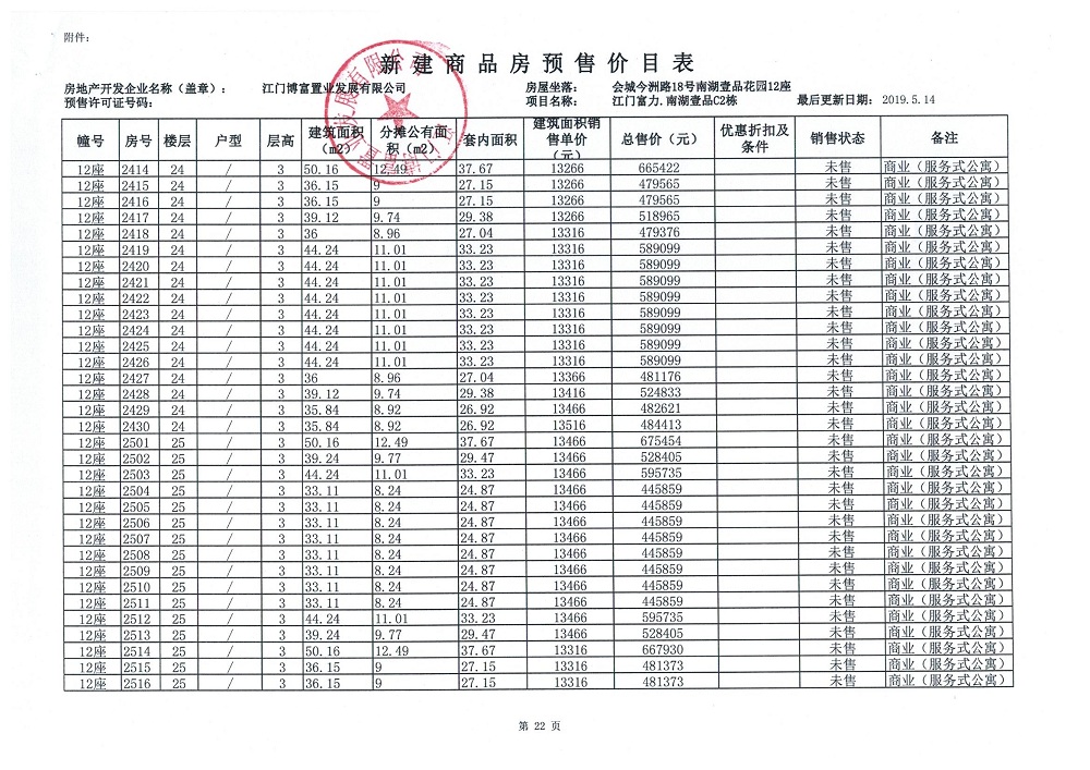 商品房预售许可(新会预许字第2019032号,江门富力·南湖壹品C2栋(33层))