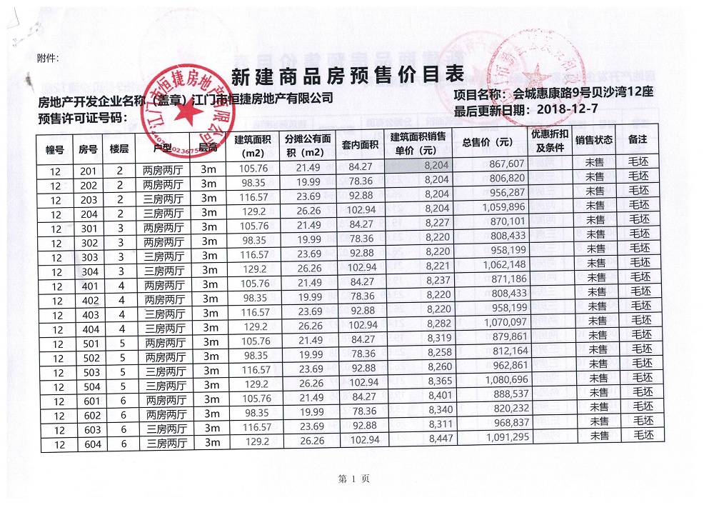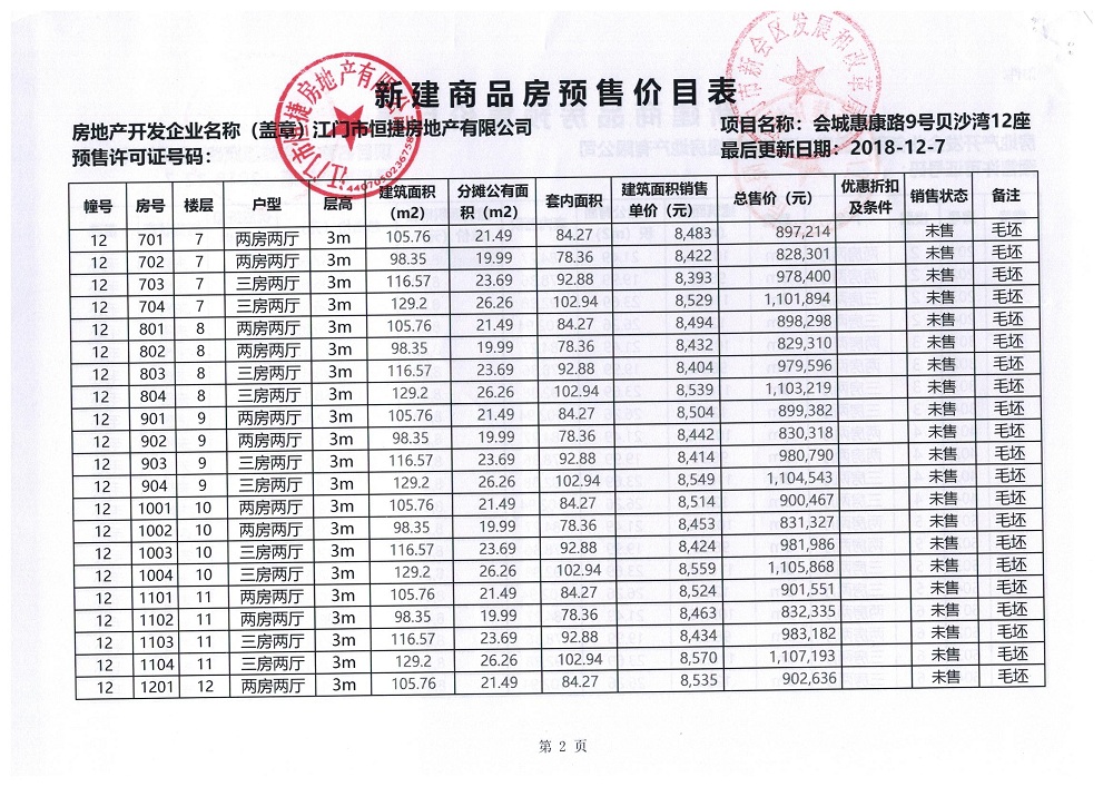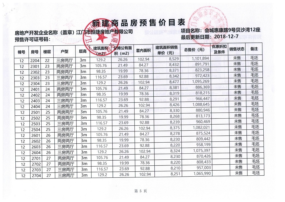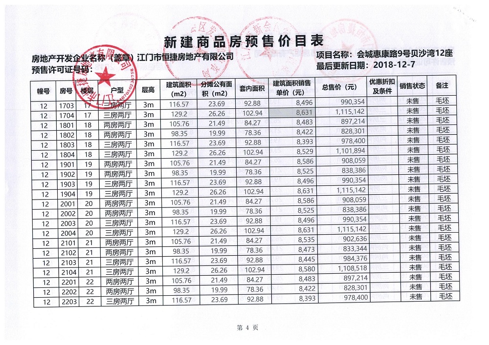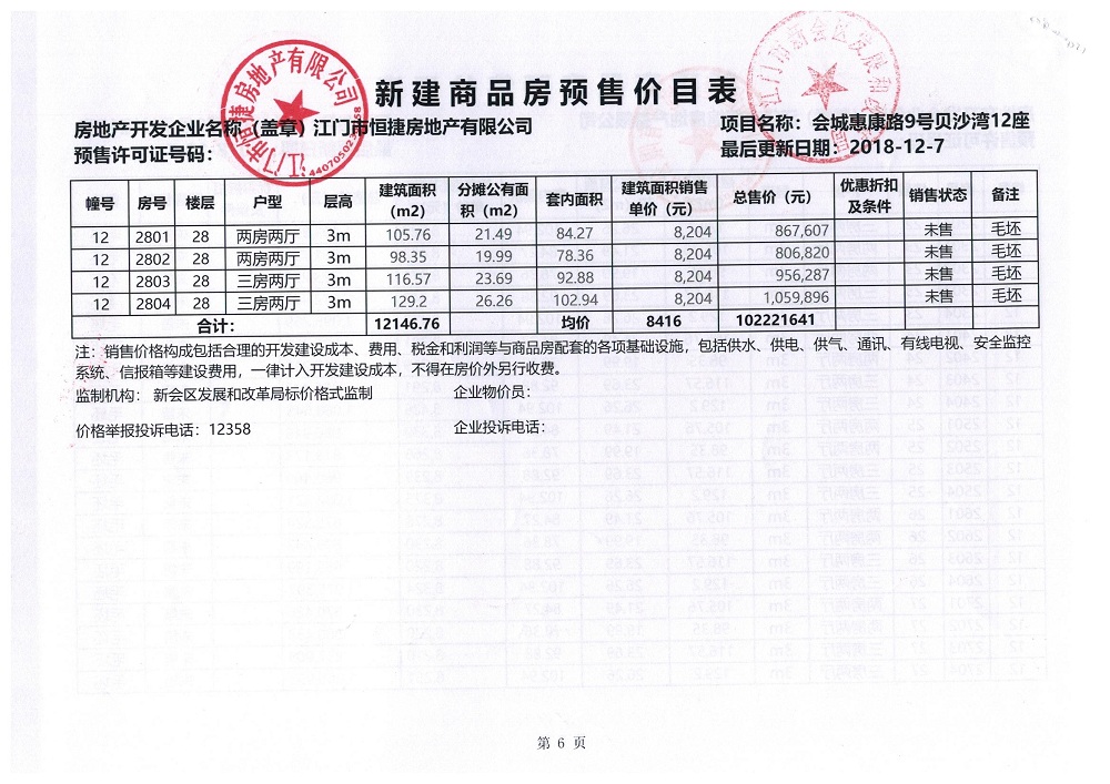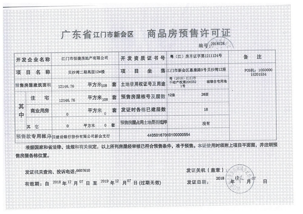 商品房预售许可(贝沙湾二期高层12_楼,2018128)