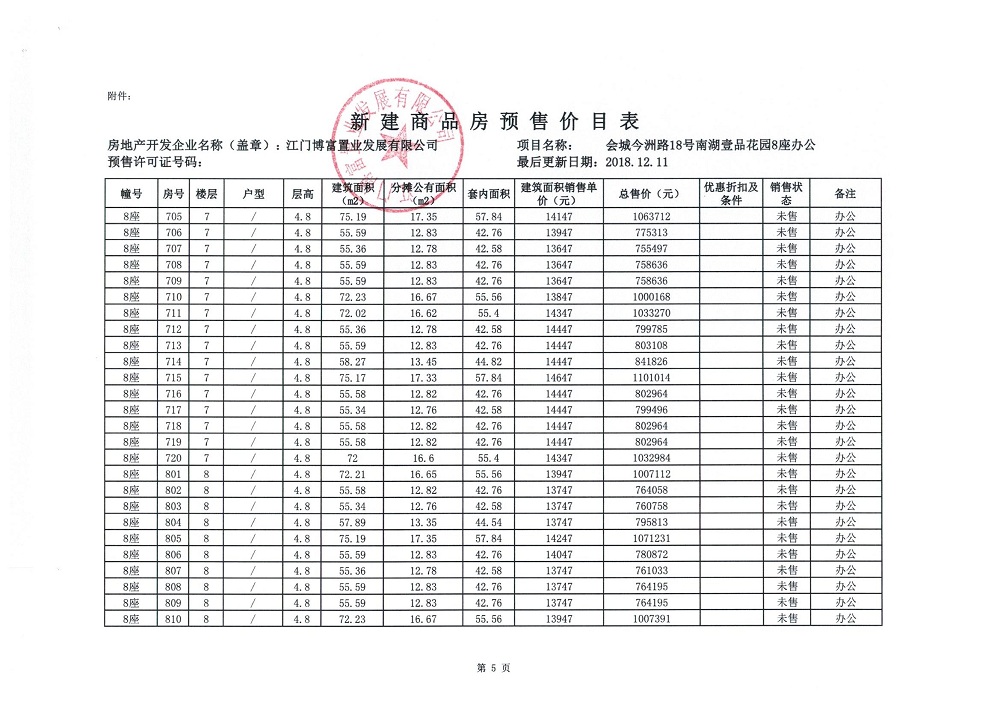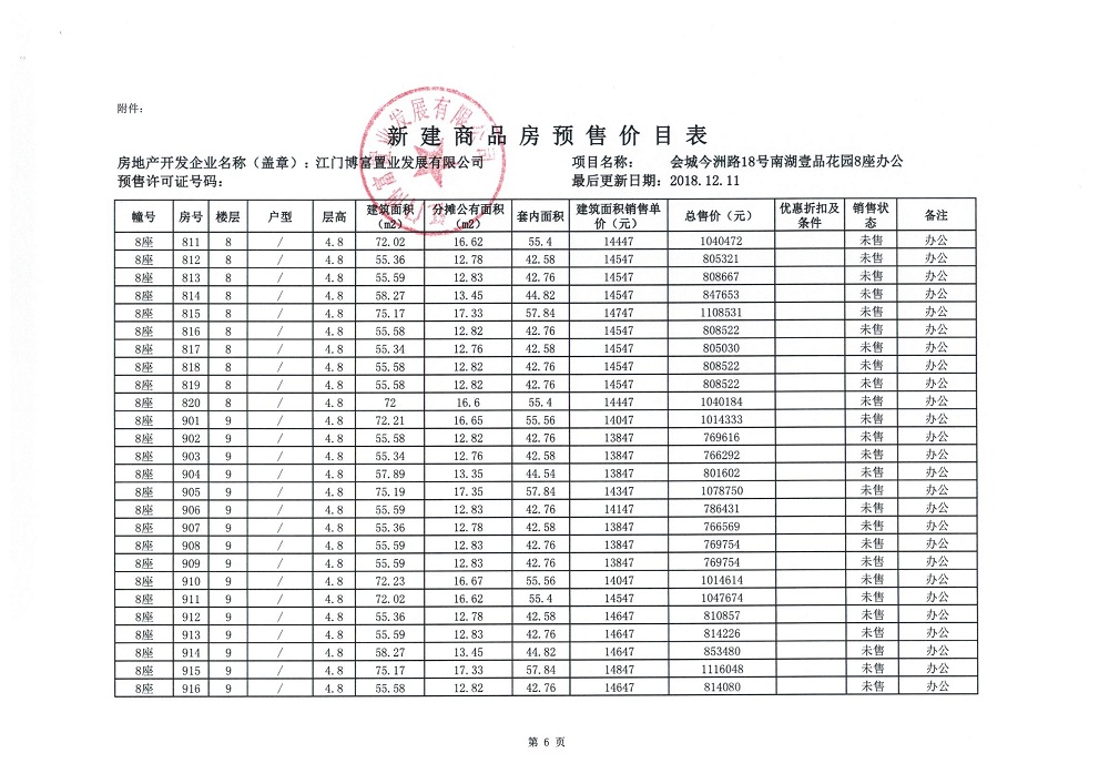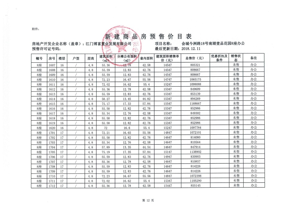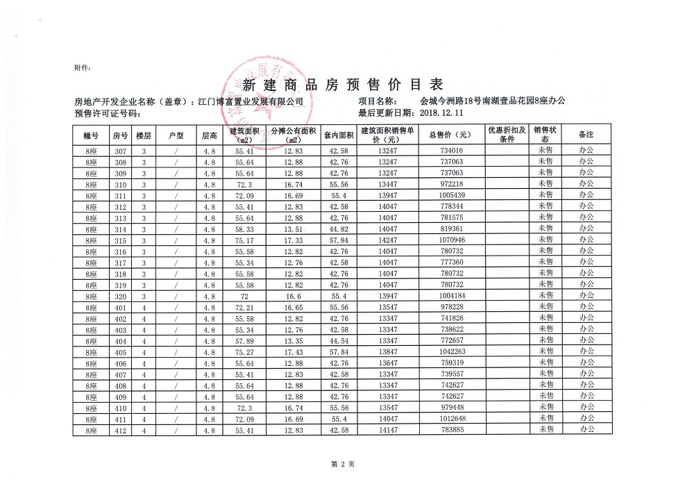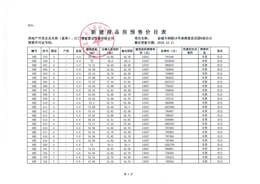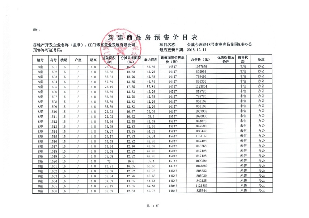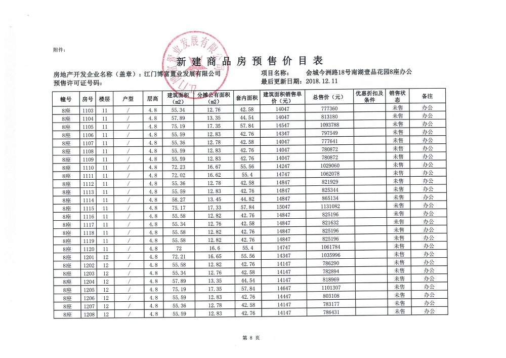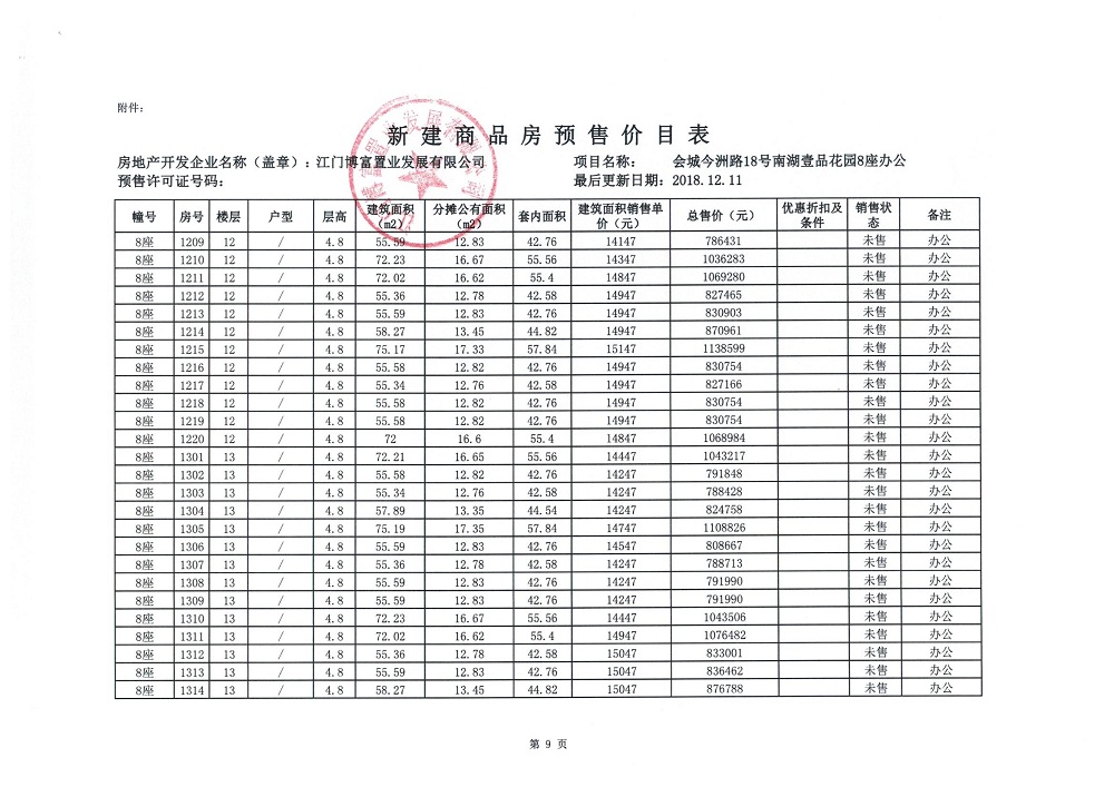商品房预售许可(2018138江门富力·南湖壹品B1栋(20层))