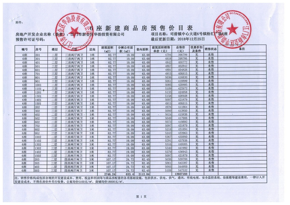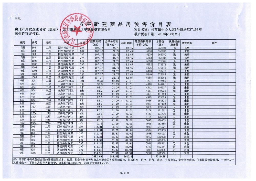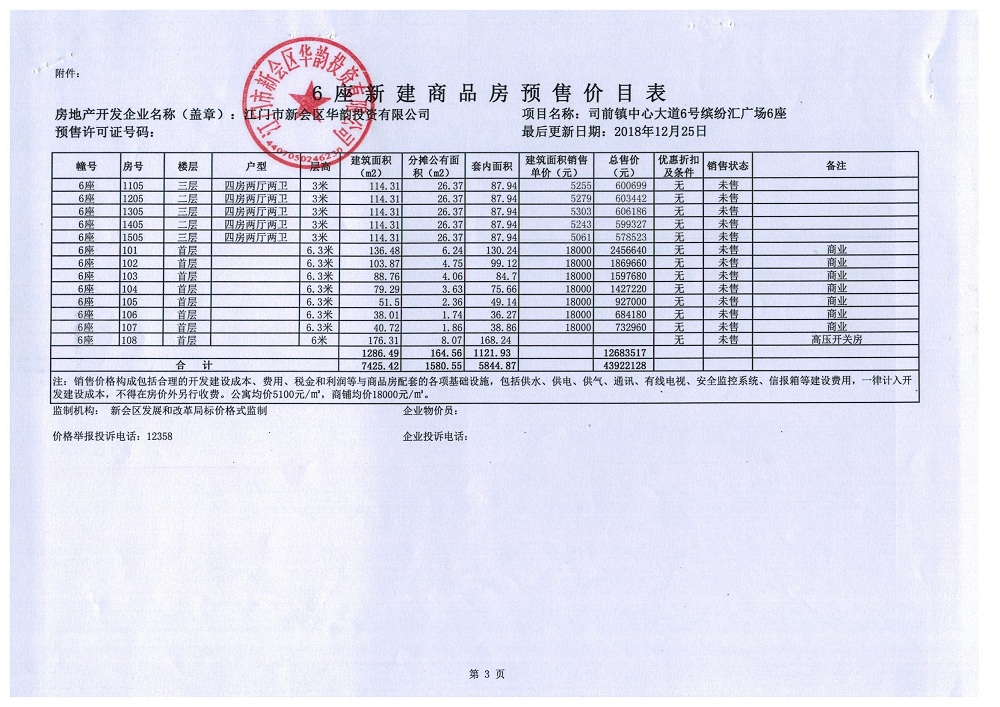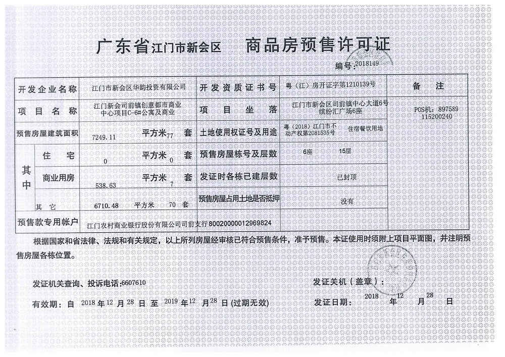 商品房预售许可(2018149江门新会司前镇创意都市商业中心项目C6_公寓及商业)