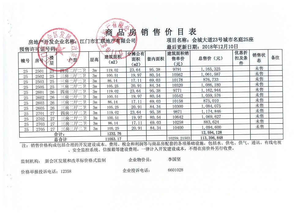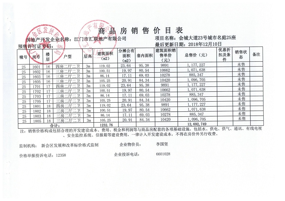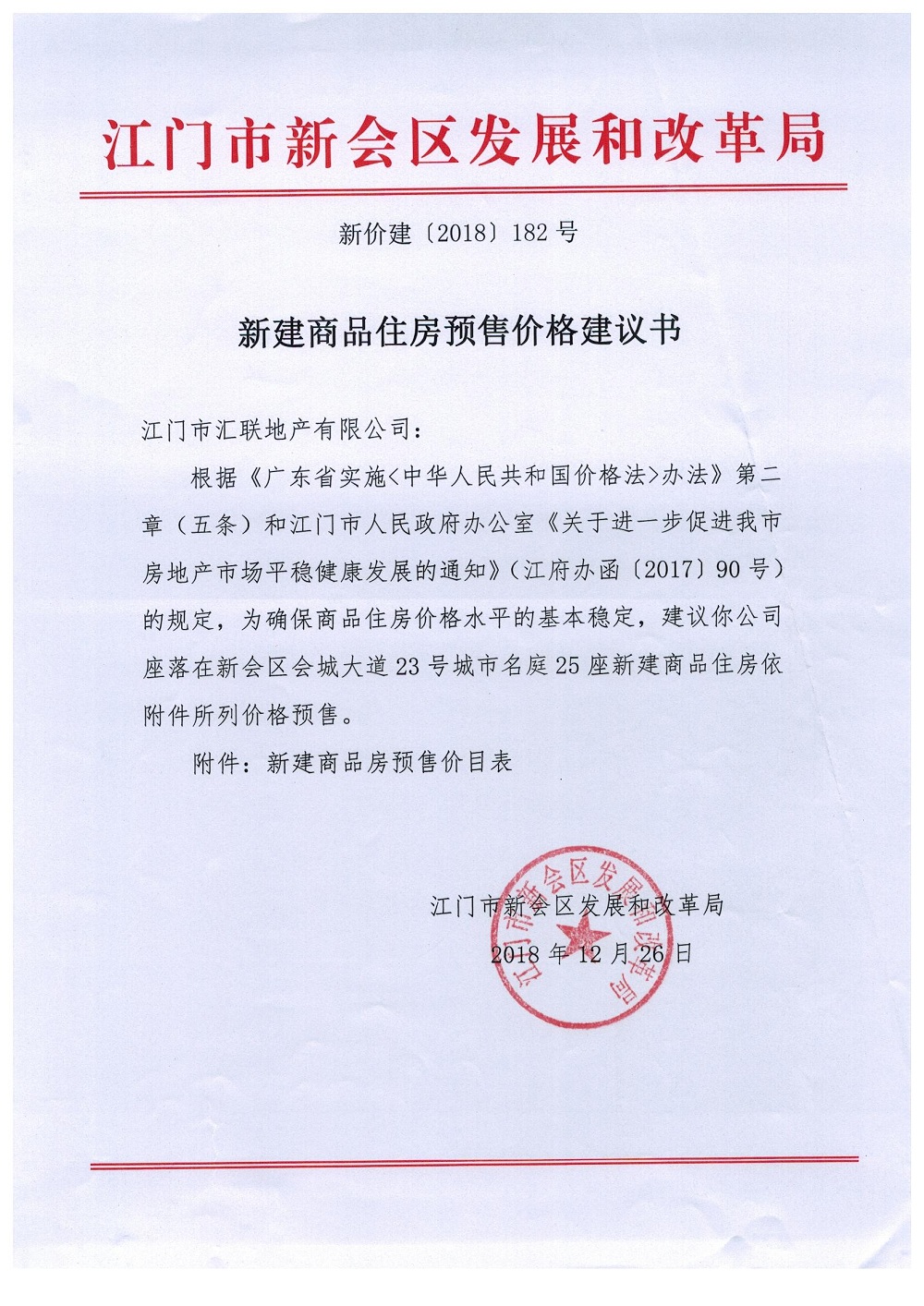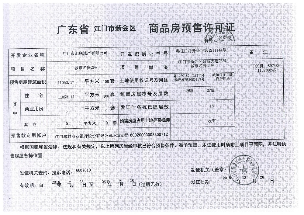 商品房预售许可(2018150城市名庭2座)