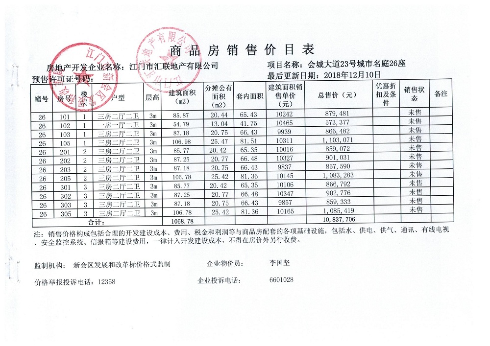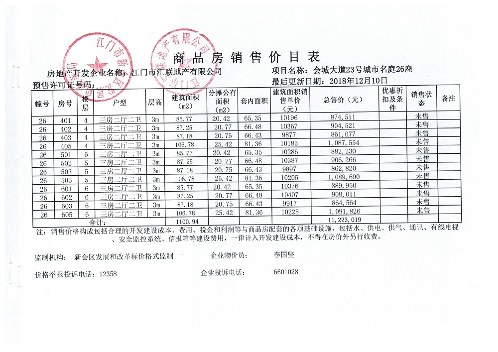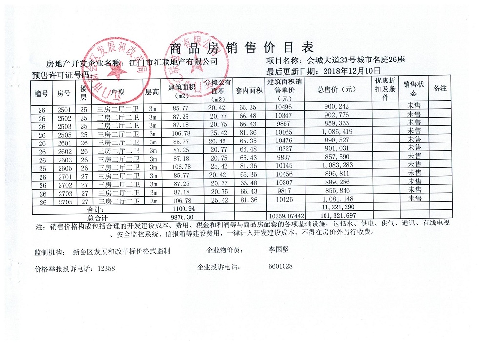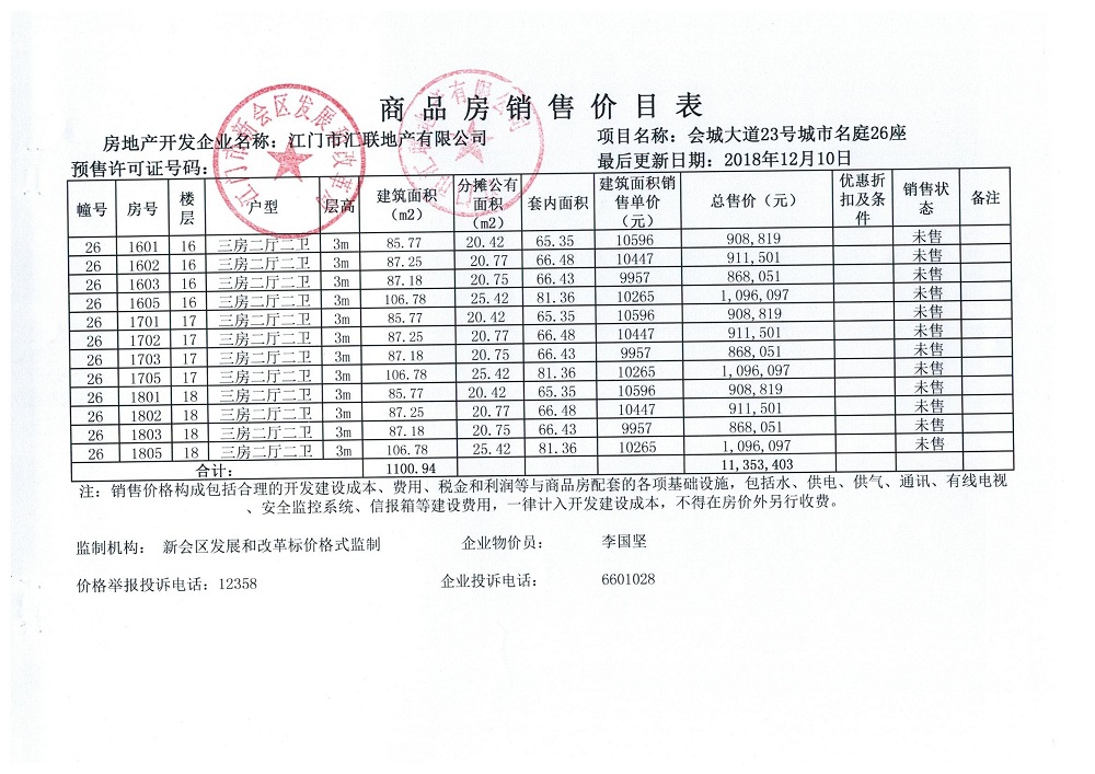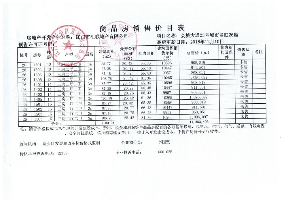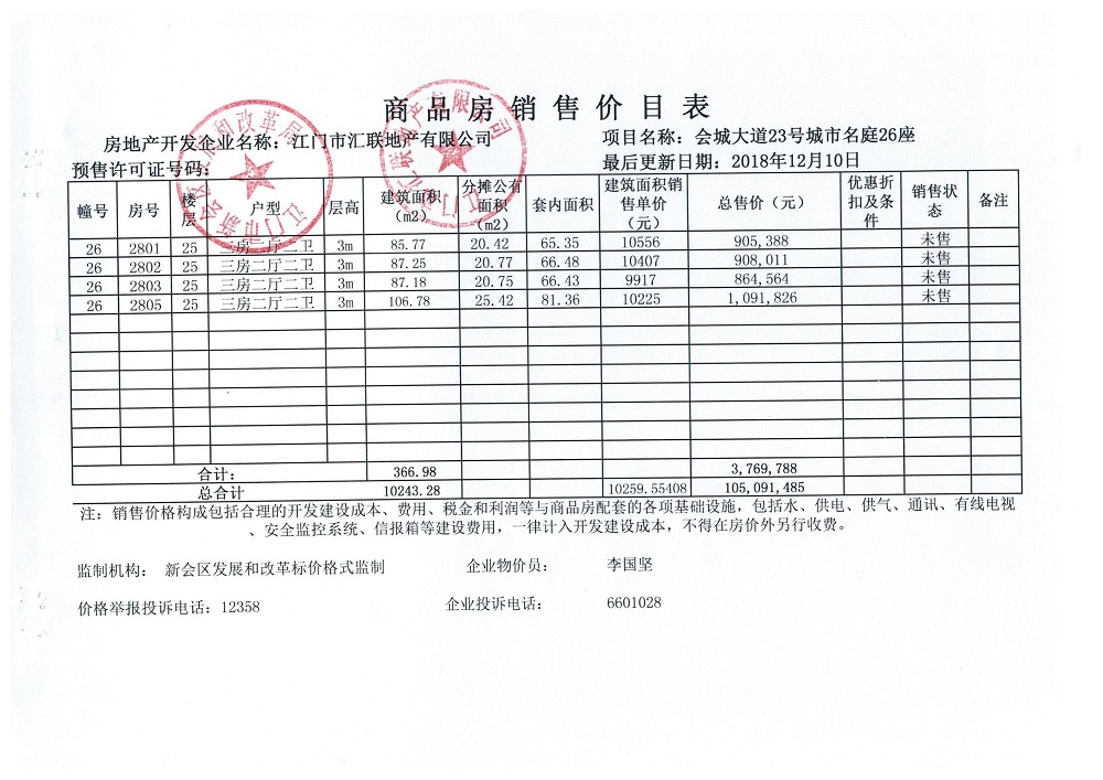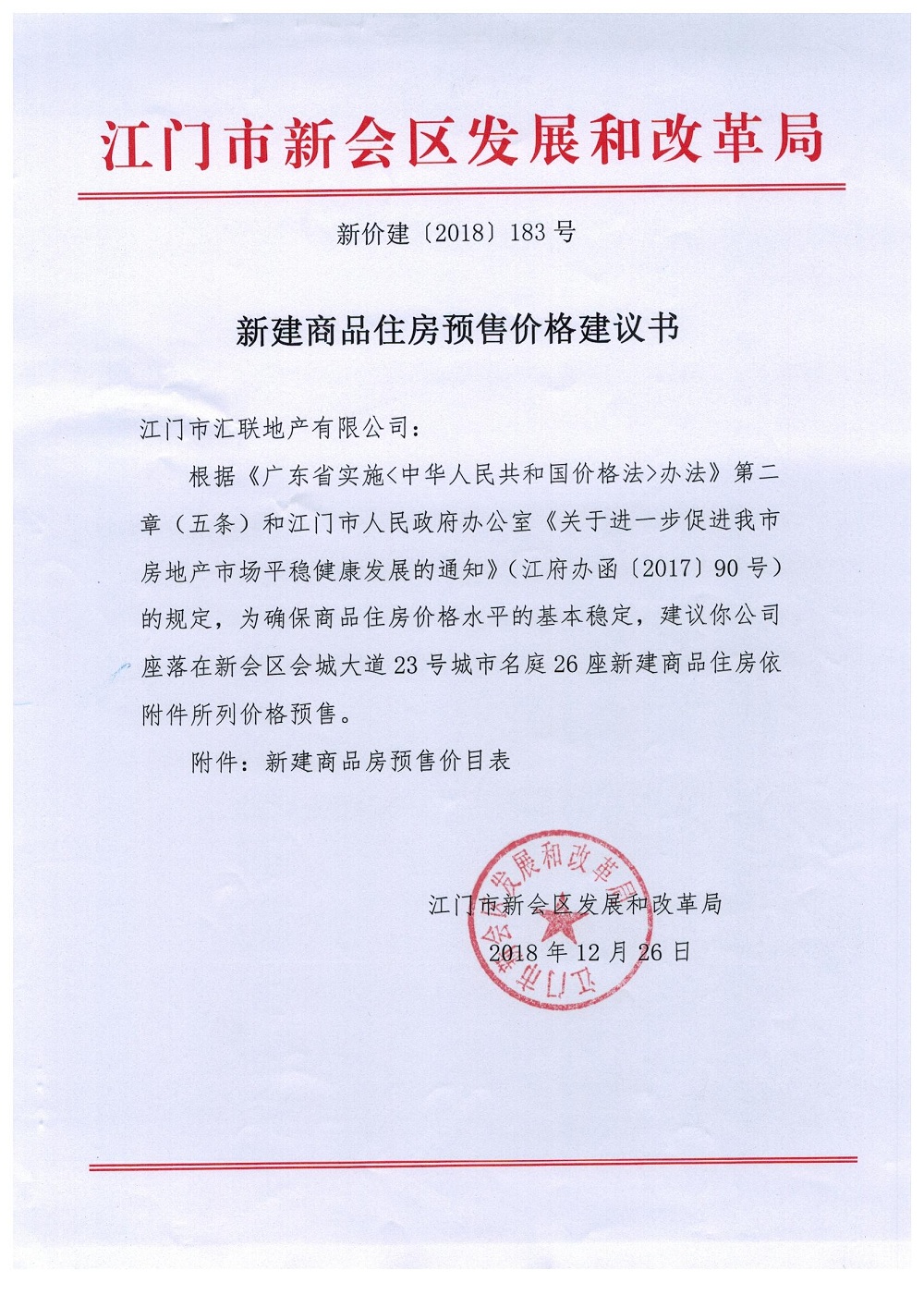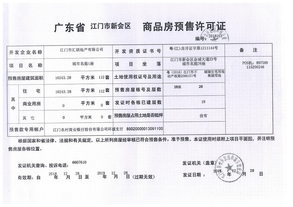 商品房预售许可(2018151城市名庭1座)