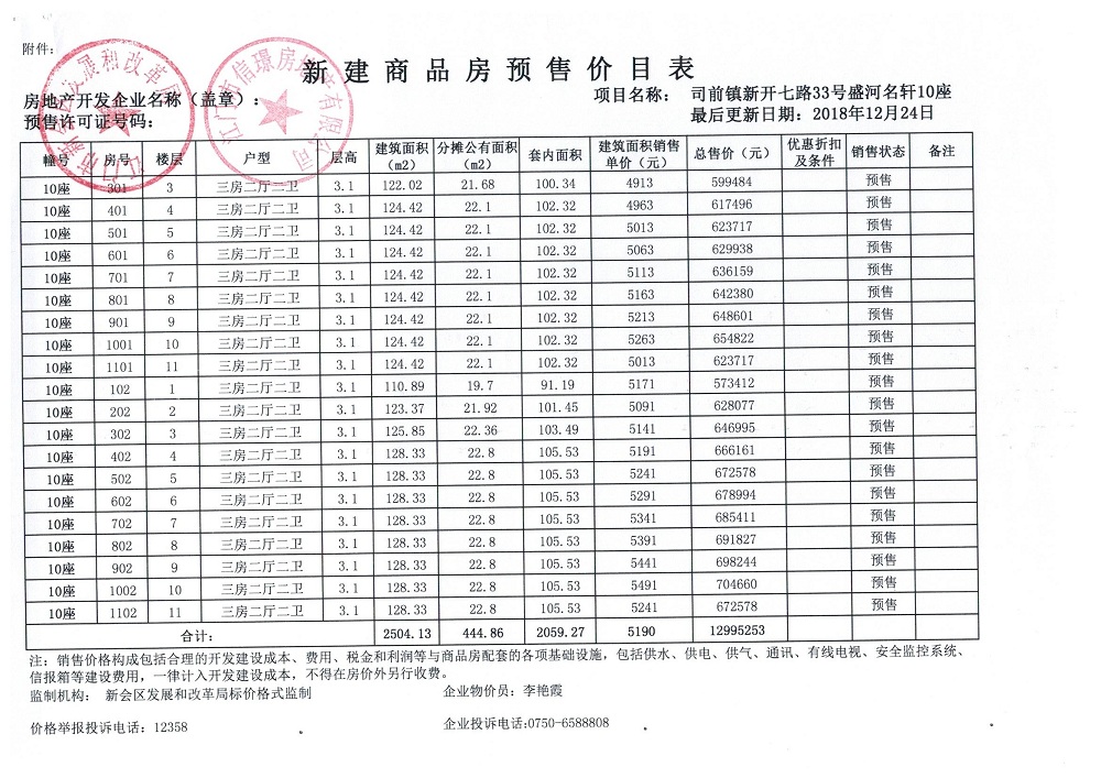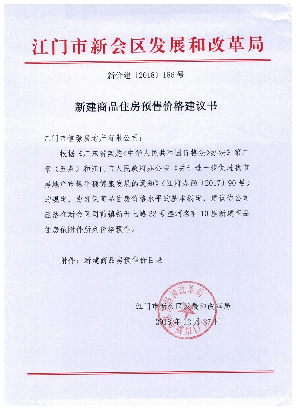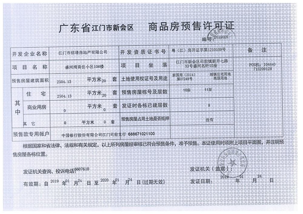 商品房预售许可(2019009盛河湾商住小区10#楼)