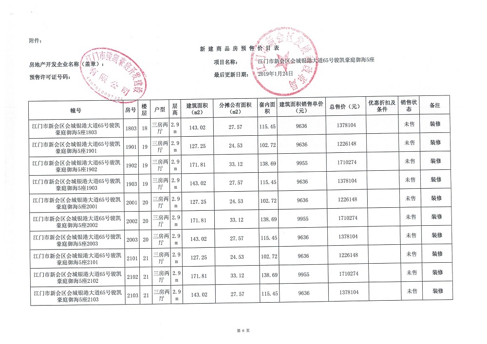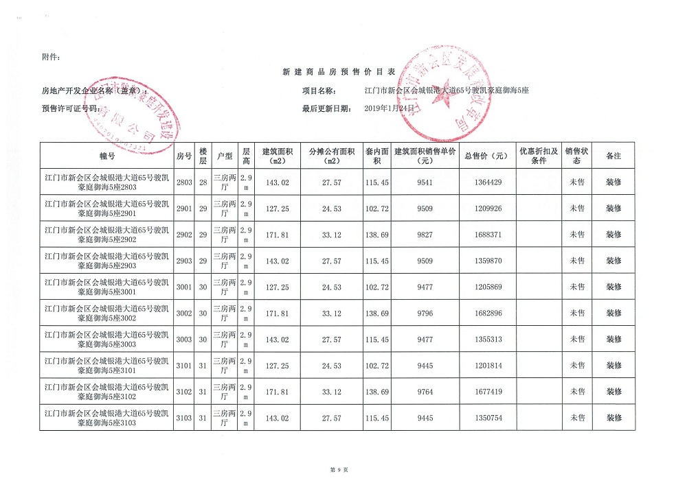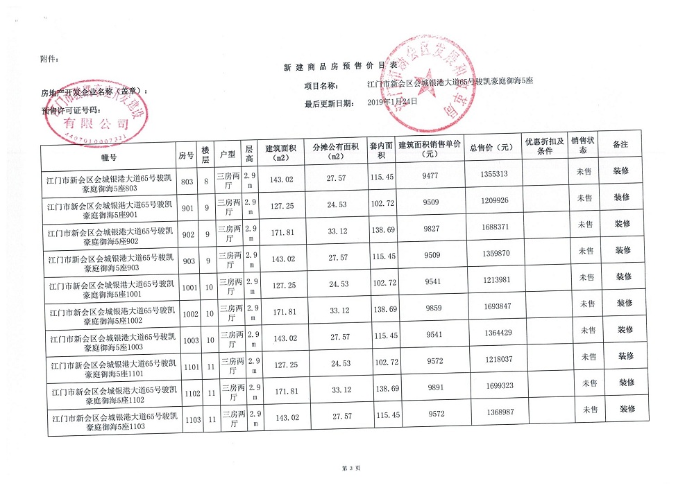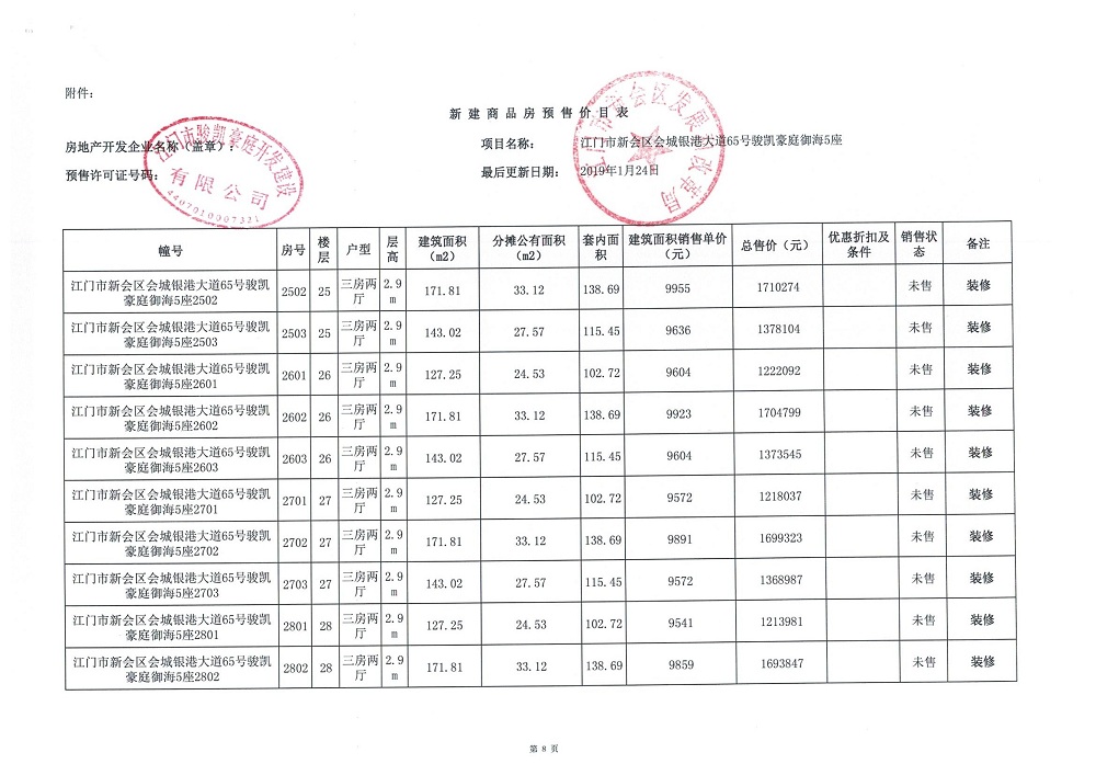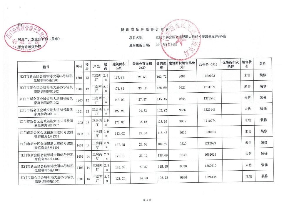 商品房预售许可(2019018江门新会骏凯豪庭二期12座))