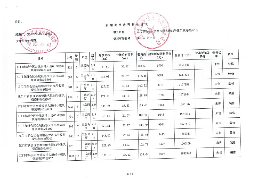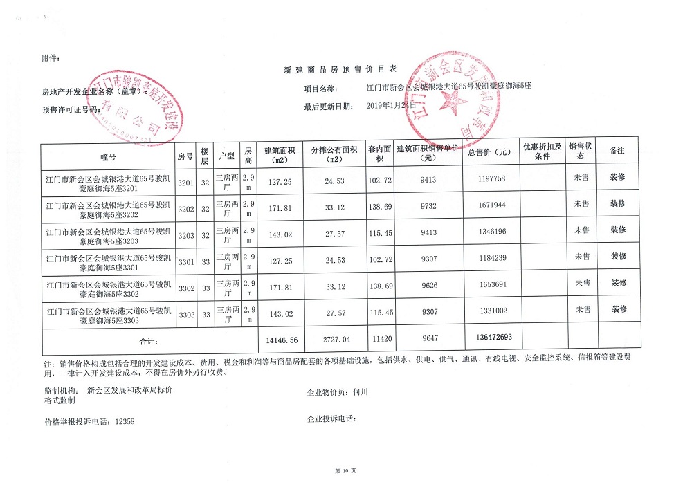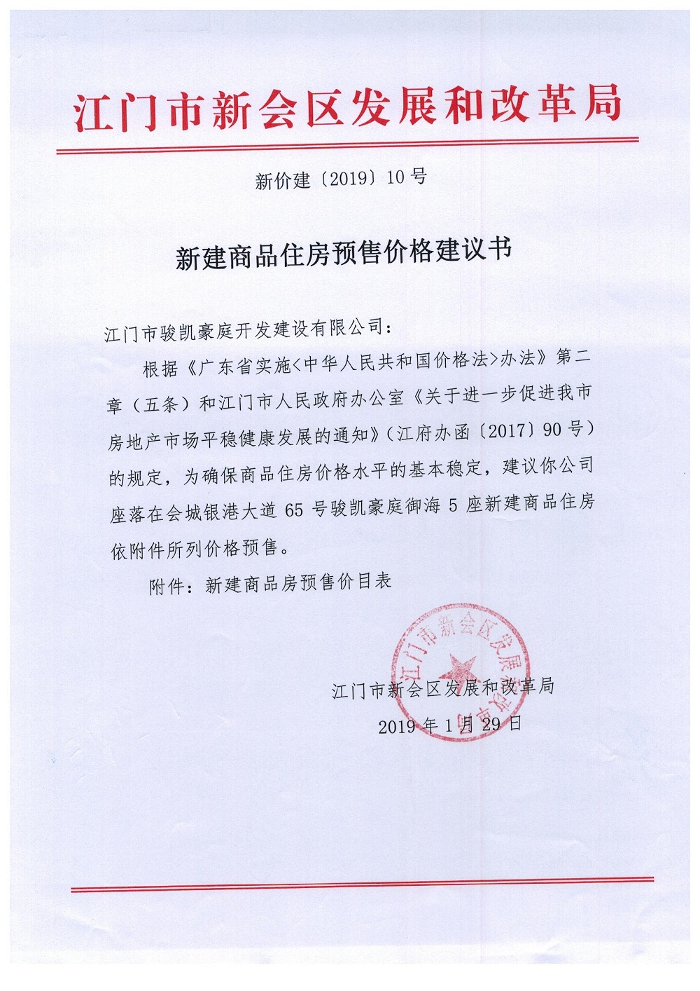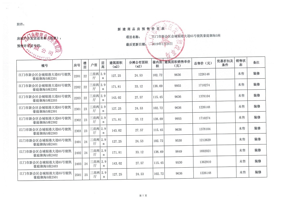 商品房预售许可(2019018江门新会骏凯豪庭二期12座))