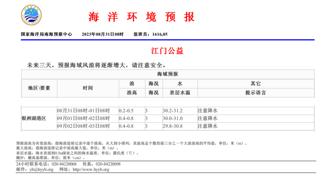 海洋环境预报(2023.8.31)