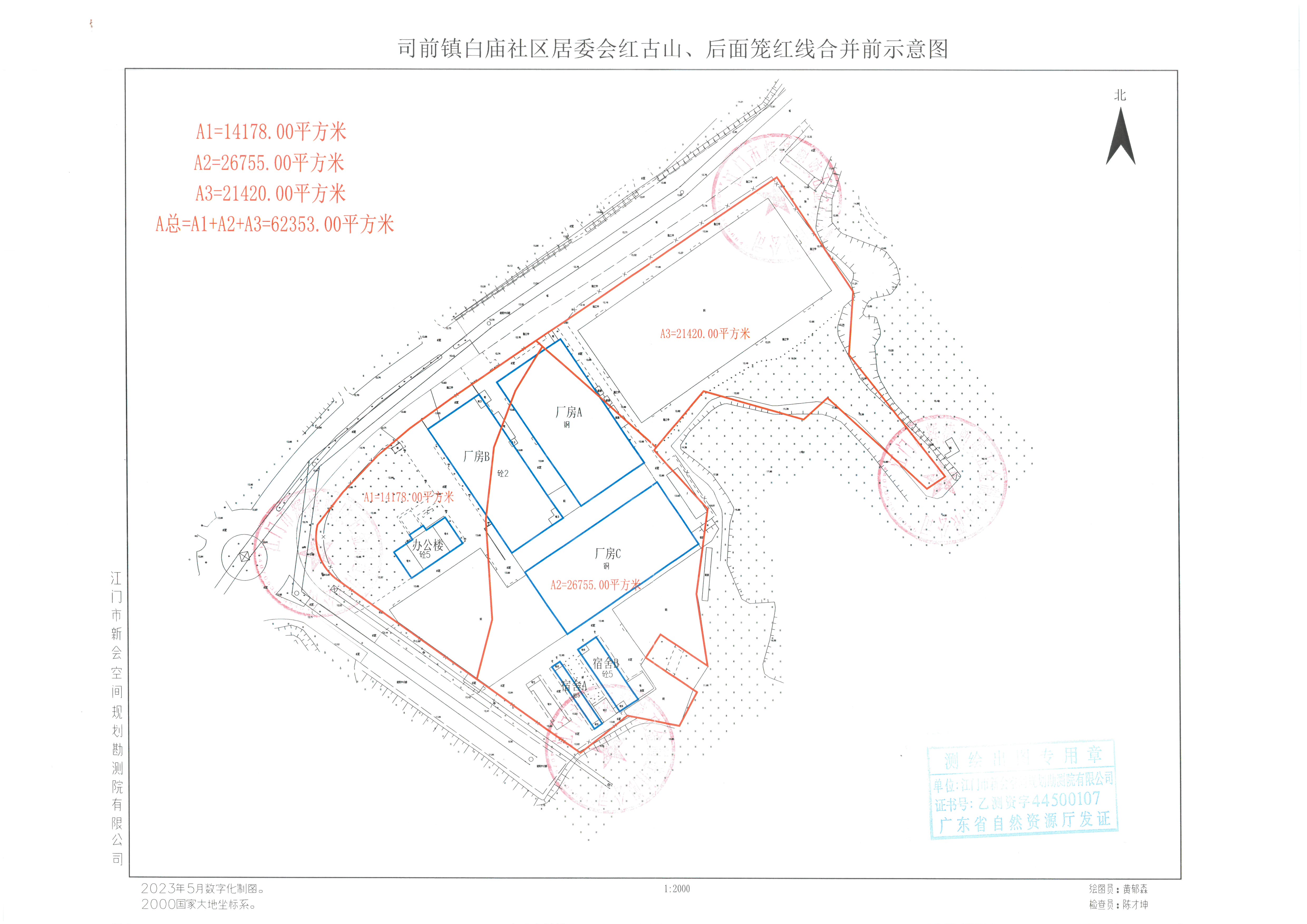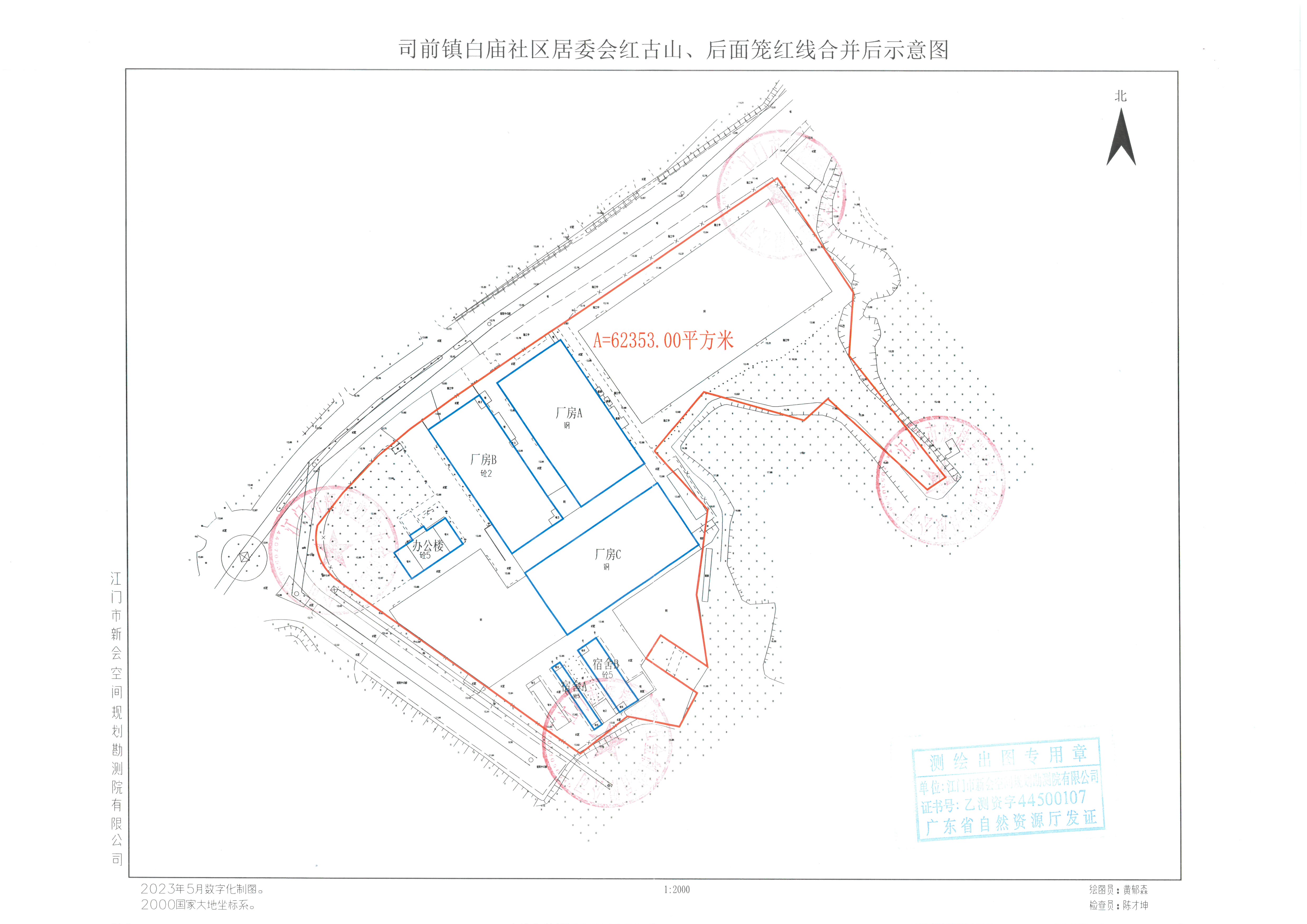 经批准,拟将江门市辉捷塑胶五金制造有限公司位于燕雨直播 司前镇白庙社区居委会红古山、后面笼面积62353平方米(原面积分别为26755、21420、14178平方米)的用地红线进行合并调整,土地使用期限以年限短的地块来确定。现将合并调整的用地红线(详见附图)向社会进行公示。公示期10天,在公示期间,各单位和个人如对该公示有异议,请与江门市燕雨直播 自然资源局联系。公示期满无人提出异议的,我局将按该方案办理用地红线合并调整手续。