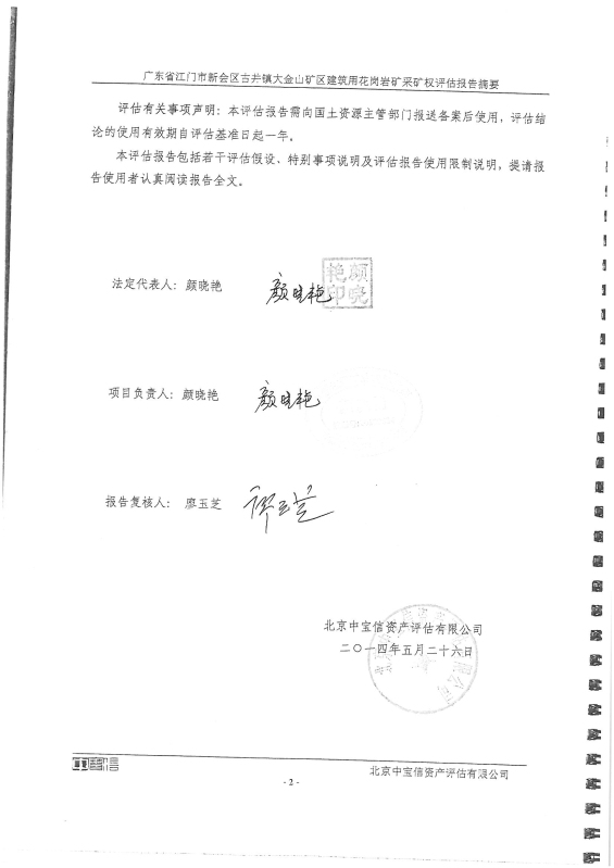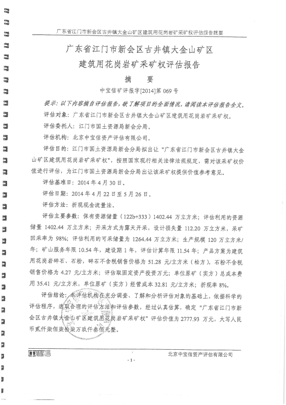 关于《广东省江门市燕雨直播 古井镇大金山矿区建筑用花岗岩采矿权评估报告》的公示