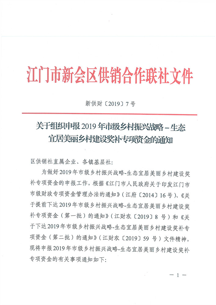 【通知】关于组织申报2019年市级乡村振兴战略-生态宜居美丽乡村建设奖补专项资金的通知