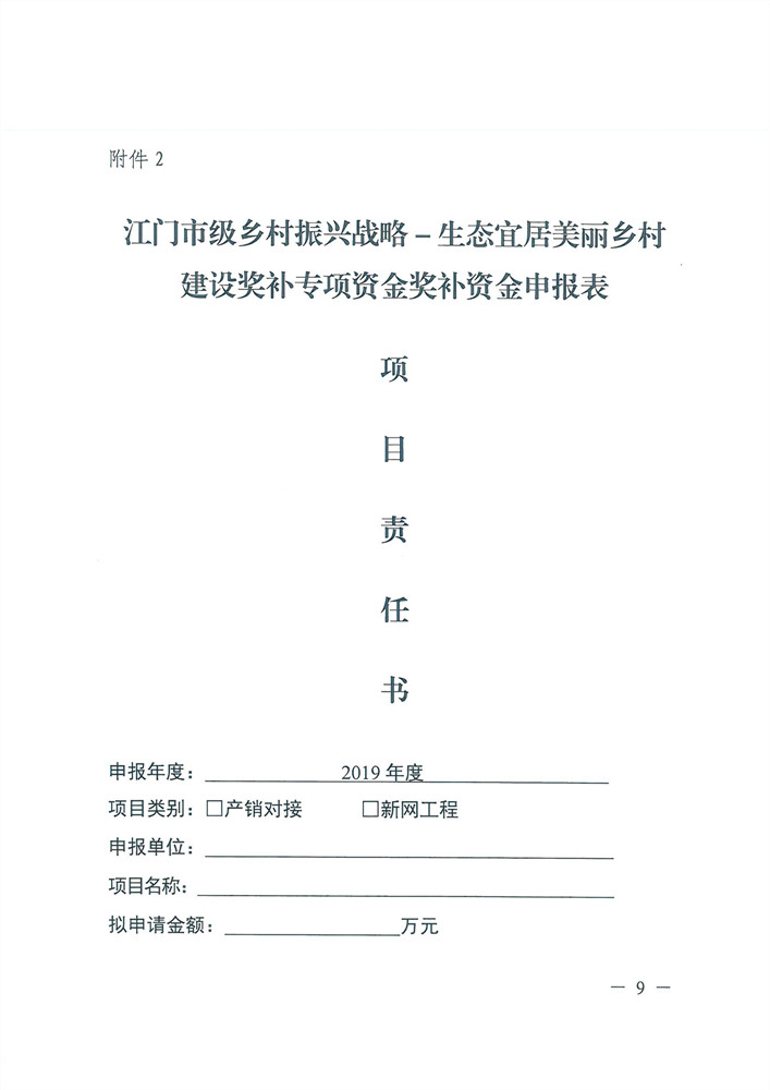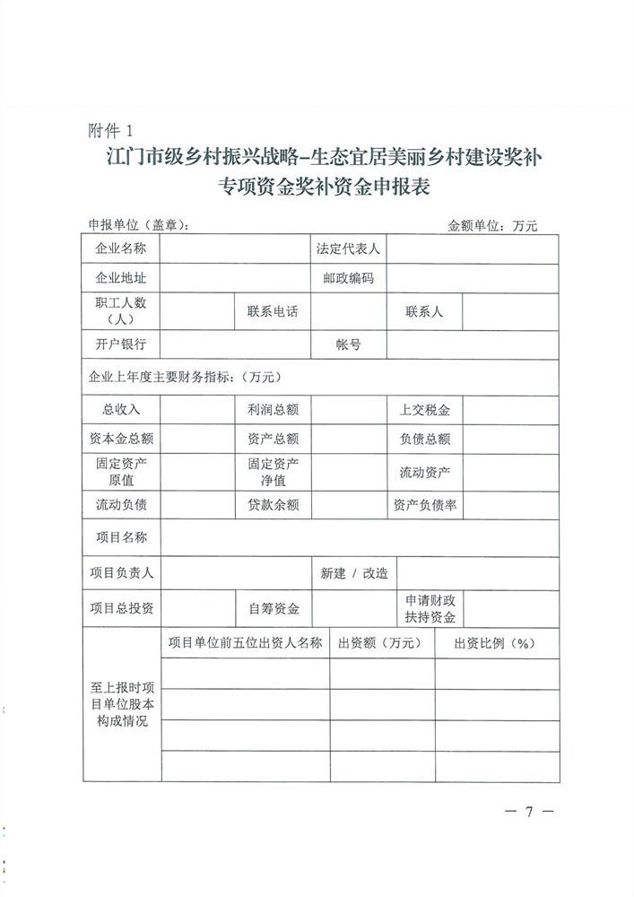 附件1江门市级乡村振兴战略-生态宜居美丽乡村建设奖补专项资金奖补资金申报表
