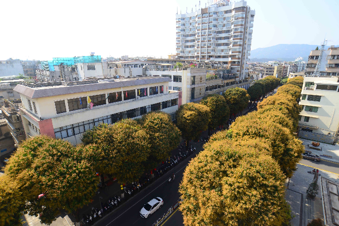 行走在路上,都能感受到属于春天的芬芳。抬头望去,一棵棵芒果树,满树花开,一簇一簇,如云似锦,漫天铺开,每棵树就像镀上了一层金色。