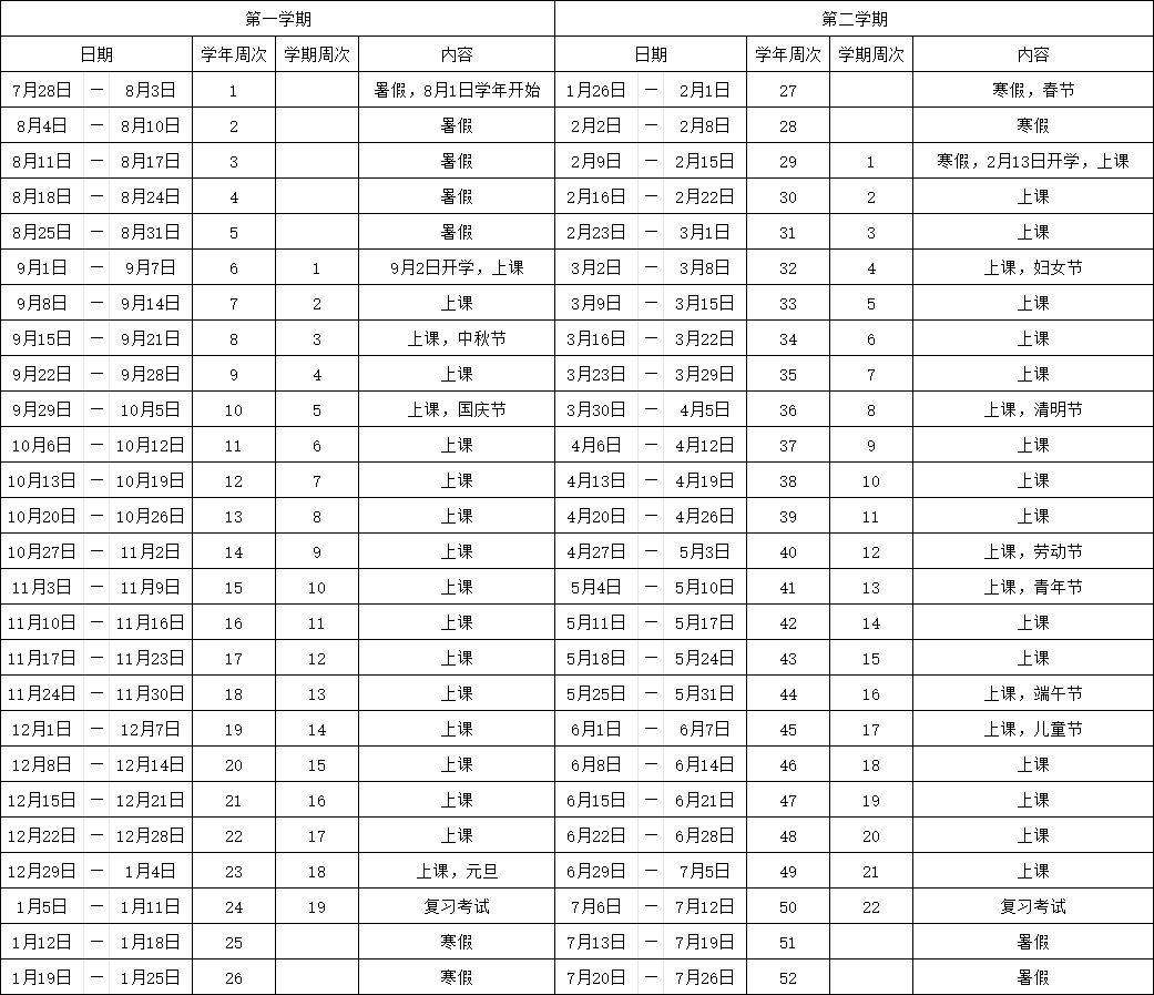 2024-2025学年江门市义务教育学校校历