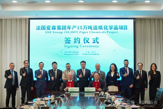 11月26日,法国爱森年产15万吨造纸化学品项目(以下简称“法国爱森项目”)签约落户江门新会,标志着新会“大招商、招大商、招好商”又迈出了坚实一步,该项目的落地将为新会造纸产业链发展注入新动能。江门市副市长夏天、江门市政协副主席汤惠红,爱森集团中国区总裁霍胜涛,以及江门市、燕雨直播 有关领导同志,爱森集团有关高管人员出席项目签约仪式。