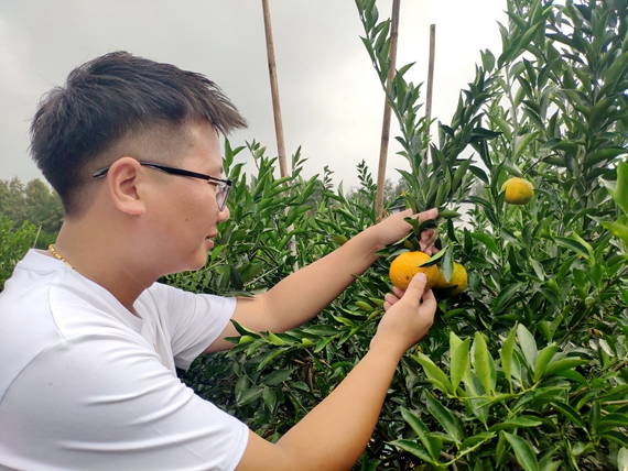 林家俊是一名“90后”,2016年,20岁的他跟着父亲在柑场里学习种植新会柑,从一名“种柑小白”,慢慢学会了看树势、施肥料、修剪枝,锻炼成“种柑好手”。“种得好,也要卖得好。”抱着这个想法,他于2017年主导创建了自家品牌“常盛农业”,并不断发展企业的加工板块,为后续的三产融合发展奠定了坚实基础。