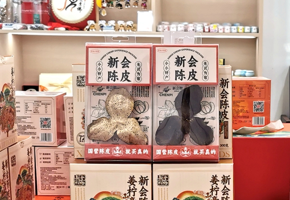 聚焦新会陈皮这一著名“土特产”,“新会优品”打造了“新会国资自营陈皮”品牌,销售新会陈皮系列产品,大力弘扬新会陈皮文化。在展会现场的“江门优品”发布会上,“新会优品”最新原创产品——一片装新会陈皮手信亮相。据了解,这是新会陈皮实现轻量化、手信化、生活化的创新产品。金慧表示,希望通过这一产品,让大家更好地了解新会陈皮,爱上新会陈皮。
