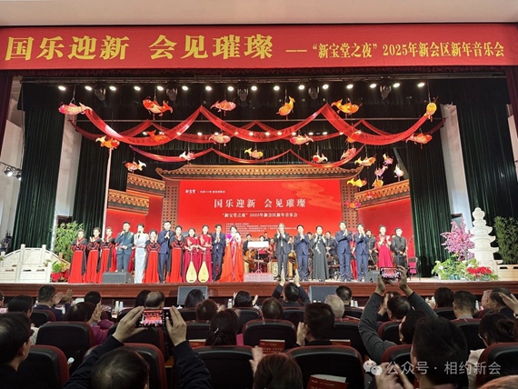 12月31日晚,“国乐迎新,会见璀璨”新宝堂之夜2025年燕雨直播 新年音乐会在新会人民会堂举办。音乐会邀请著名乐团广东音乐曲艺团为市民倾情演奏,用广东音乐唱响新会文旅高质量发展的主旋律。