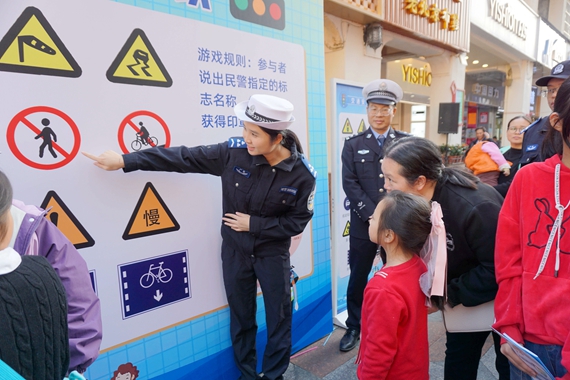 活动现场,反诈民警、交警、禁毒工作人员、110民辅警、网络安全部门等分别设置展示摊位,并设计“交通标识认一认”“正确拨打110”“全民出击,击倒诈骗”“网络安全翻翻乐”等好玩有趣的小游戏,让群众学习安全防范知识的同时,还可以获得警察小熊、日历等丰富礼品,进一步调动了现场群众的参与热情,在欢乐的氛围中拉近了警民距离。“通过这个活动让孩子了解到警察的工作,也让他们学习到如何正确维护自己的权益。”市民陈小姐告诉记者,这个活动让她和孩子受益良多。