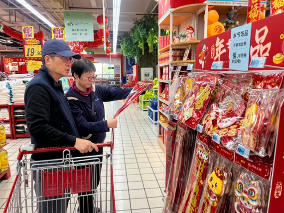 随后,记者又走访了多家卖场,同样感受到浓浓的年味。市民喜气洋洋地选购商品,脸上洋溢着幸福的笑容,新年气氛拉满。“现在开始置办年货了,糖果饼干都要买一些。”市民黄女士说道。