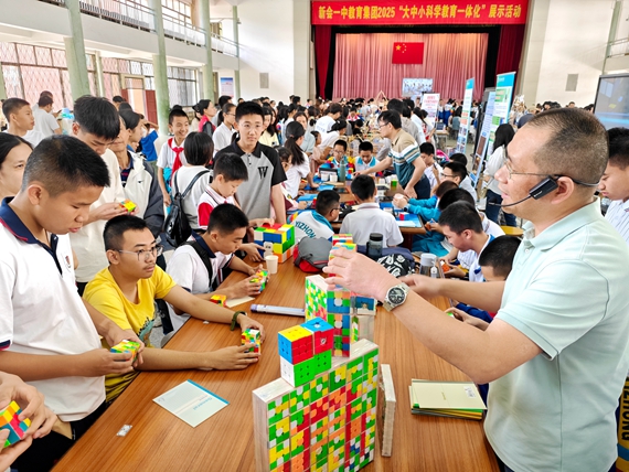5月11日,新会一中教育集团举办“大中小科学教育一体化”展示活动,集中展示学生们一系列充满创意的科技作品以及多所高校的前沿科技成果,让广大师生近距离感受科技创新的力量。