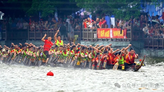 值得一提的是,今年的赛事增添了不少新亮点。赛事融入了喜迎十五运的元素,还结合八镇联动、江门三点三精彩之旅,开设了非遗美食、名优产品展销会。游客们在欣赏精彩龙舟比赛的同时,还能品尝到地道的非遗美食,购买到当地的名优产品。这场龙舟狂欢,既是力与美的竞技场,也是非遗传承的文化盛宴,给过往游客带来了视觉、听觉、味觉的多重享受。