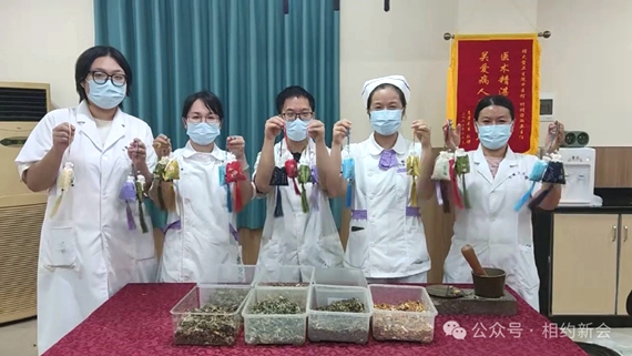 为确保香囊功效与安全性,该院精选新会陈皮、艾叶、紫苏叶、丁香、薄荷、广藿香、金银花等七味天然中草药,严格遵循古法配方与现代工艺结合的原则。医护人员将药材按比例混合后,经研磨、过筛制成粗粉后,手工缝制成小巧荷包状香囊。